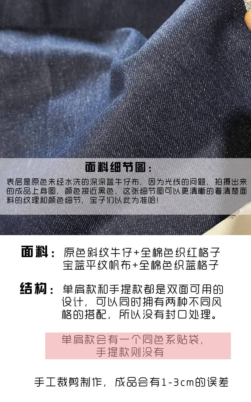 红格子和黑格子所用的牛仔是一样的原色牛仔,链接最下方的商品平铺图最接近实物颜色,可以翻过去看一下细节。