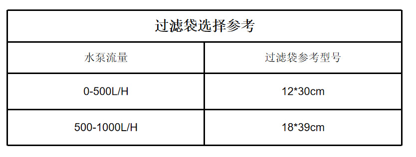 7、此表格仅做基础参考,鱼的品种,饲养密度,喂食频率等等因素都会影响到袋子的清洗频率,滤盒够大的情况建议选择大点的袋子,最重要的一点选择的袋子的型号过滤盒一定要能放得下。