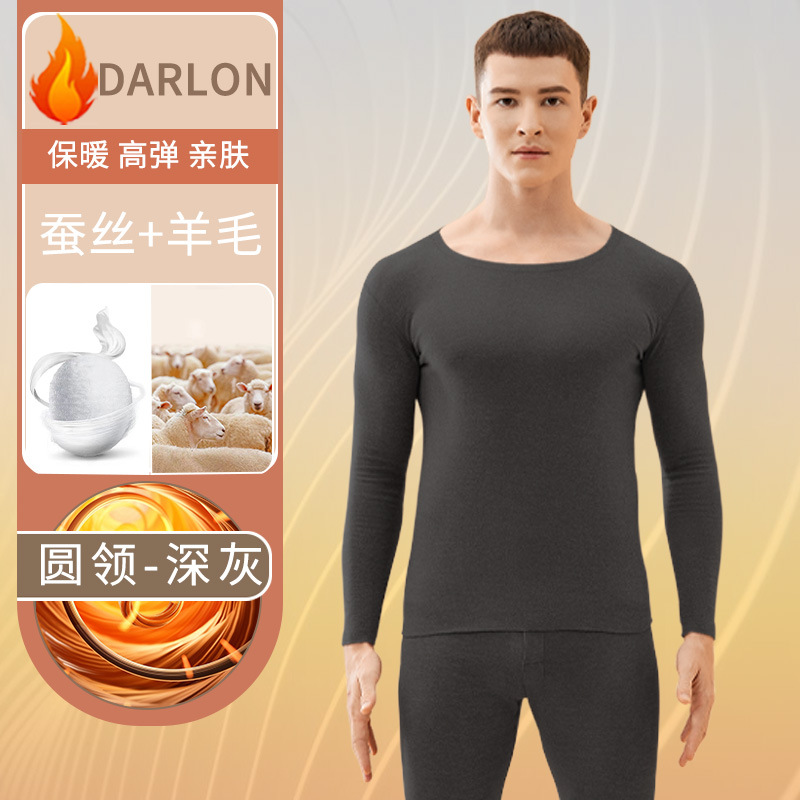 • 남성용 다크 그레이 라운드 넥 울 및 실크 슈트