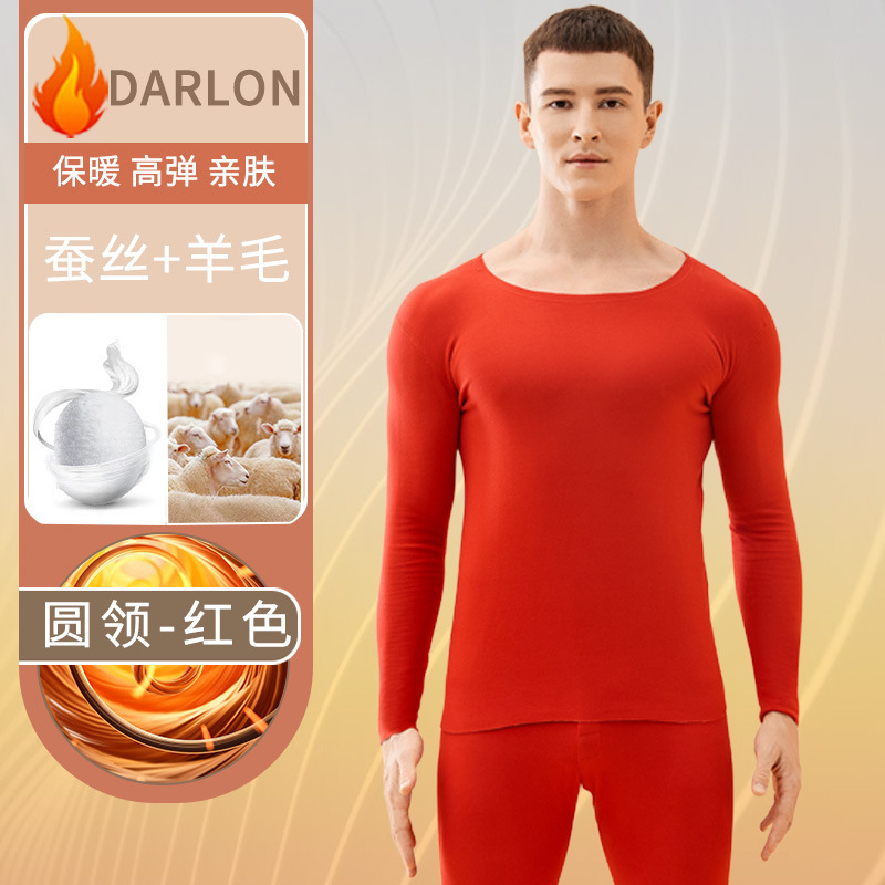 • 남성용 밝은 빨간색 라운드 넥 울 및 실크 정장