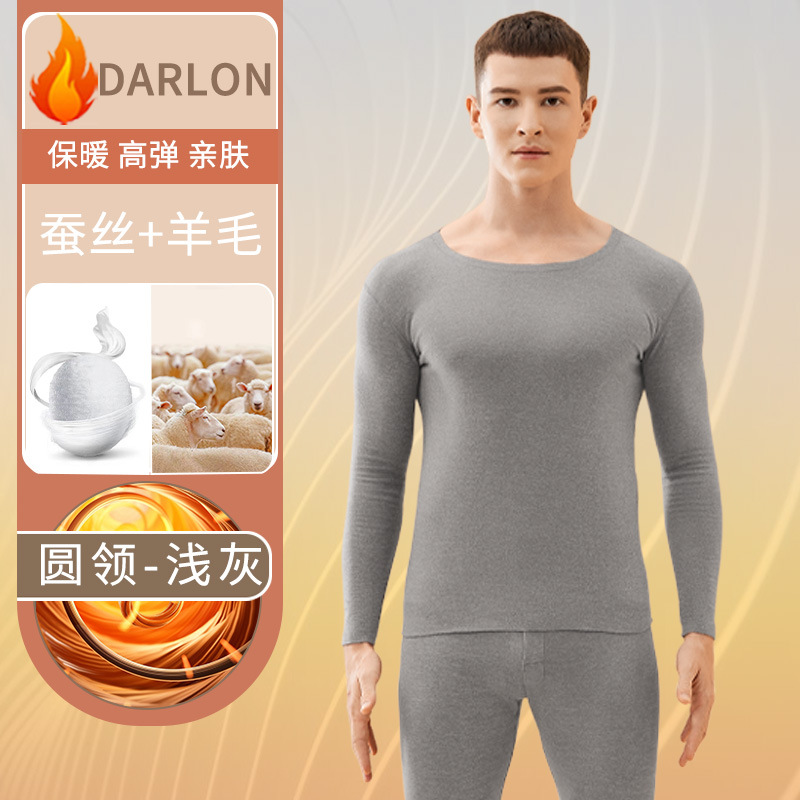• 남성용 라이트 그레이 라운드 넥 울 및 실크 슈트