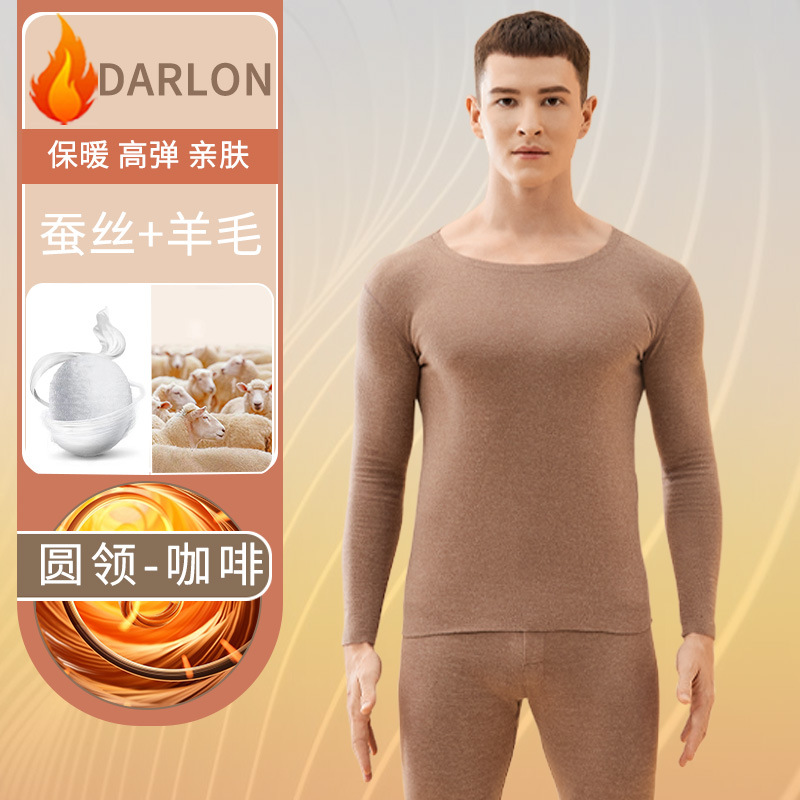 • 남성용 커피 라운드 넥 울 및 실크 슈트