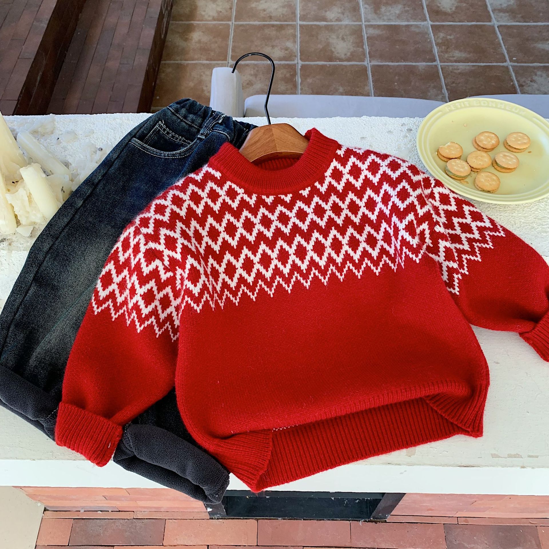 【클리어런스 특가, 반품 및 교환 불가】풀오버 라운드넥 니트 레드 새해 축제 의상 MY0086