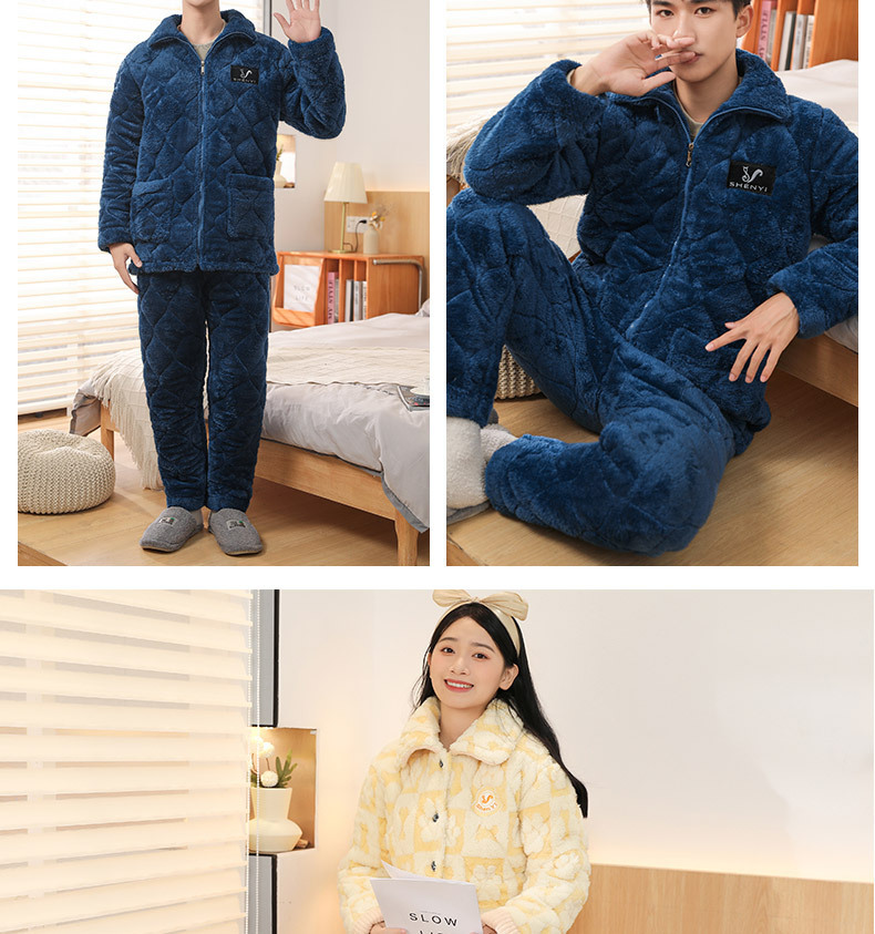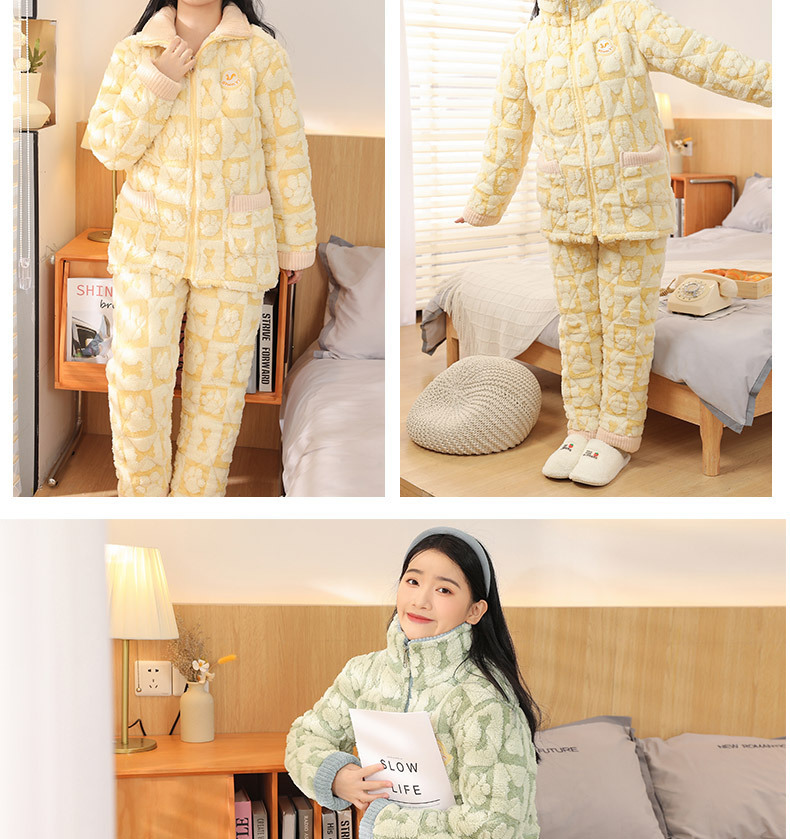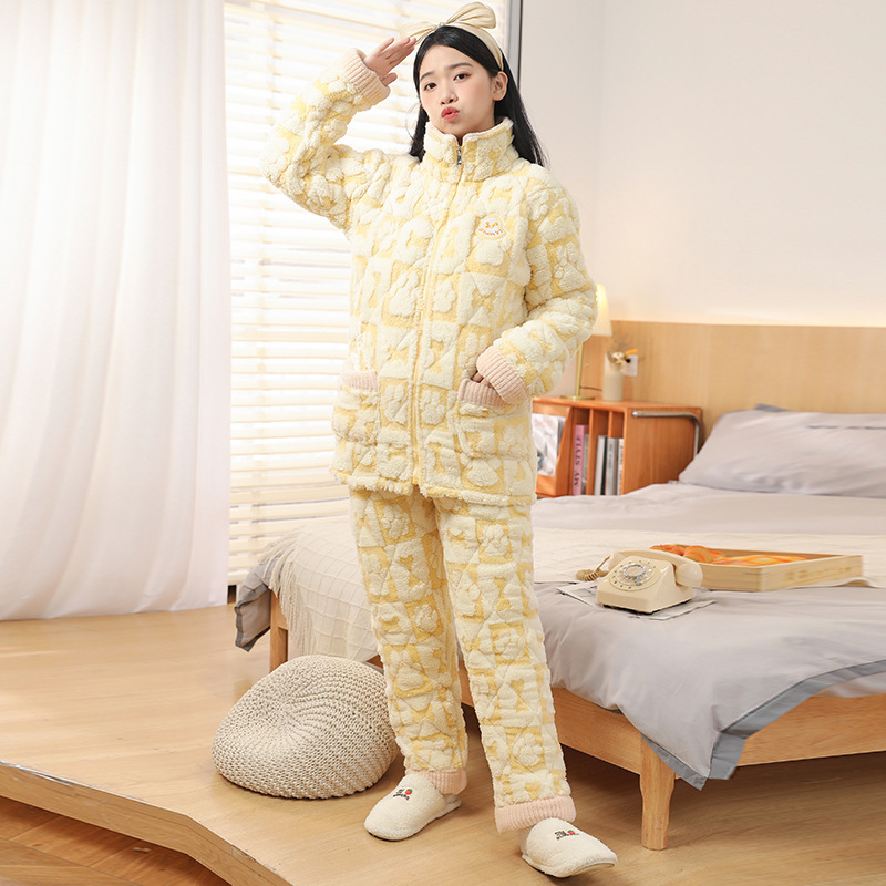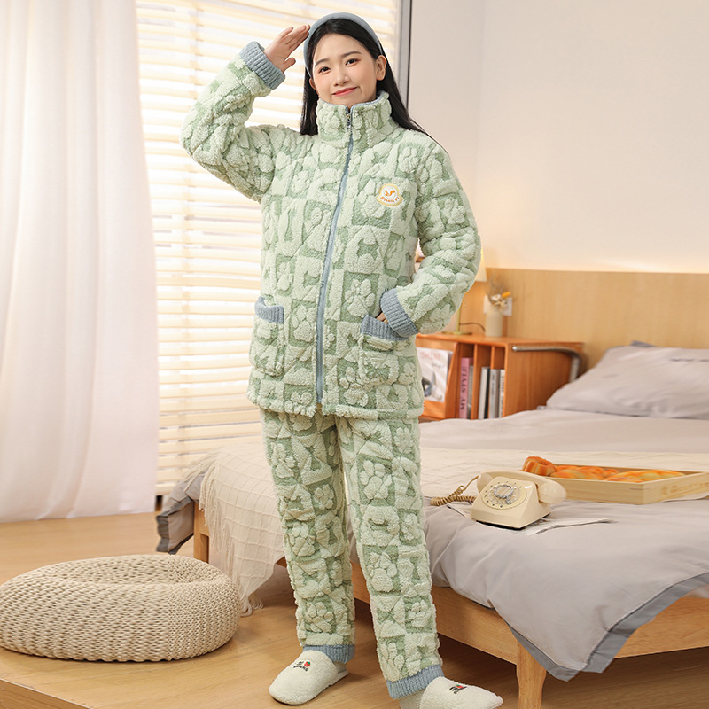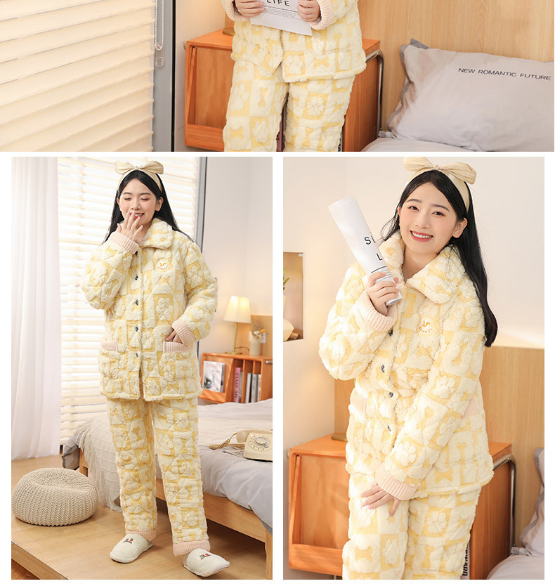 여성 성인 파자마 3 층 두꺼운 퀼트 파자마 여성의 기모 산호 양털은 따뜻한 집 옷을 입을 수 세트스토어 가기