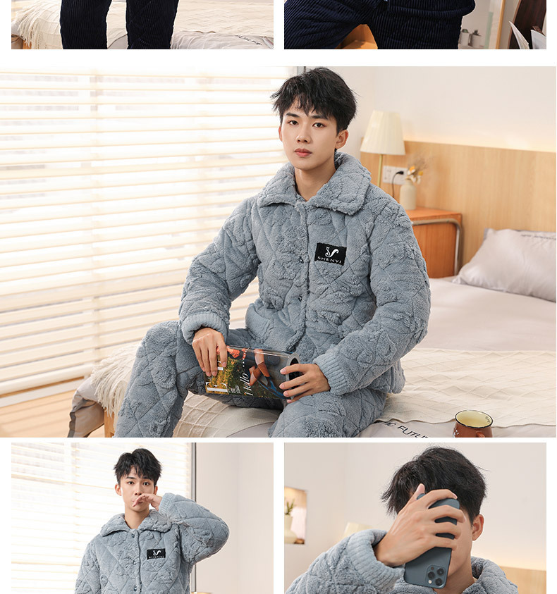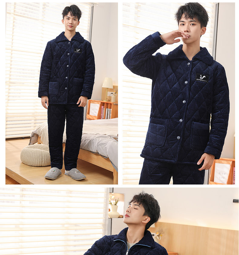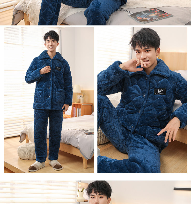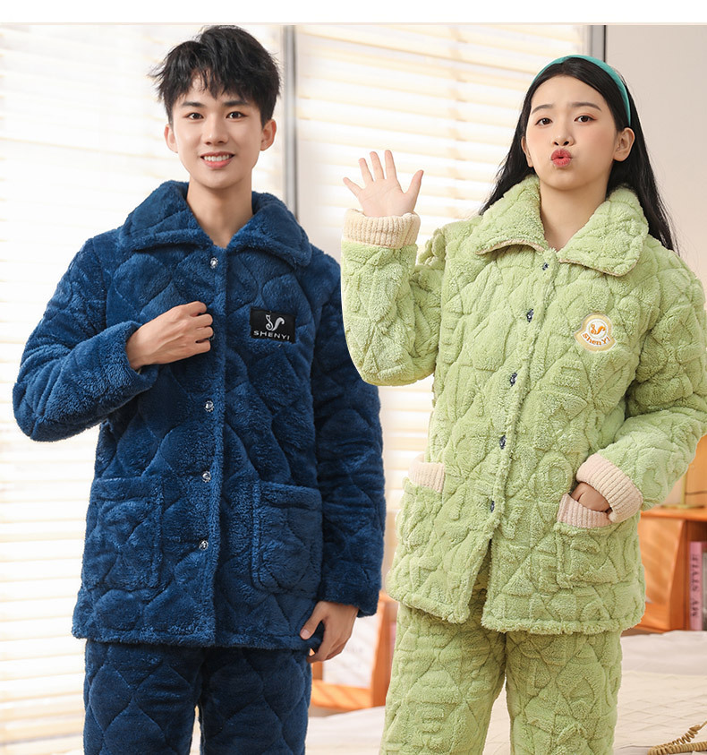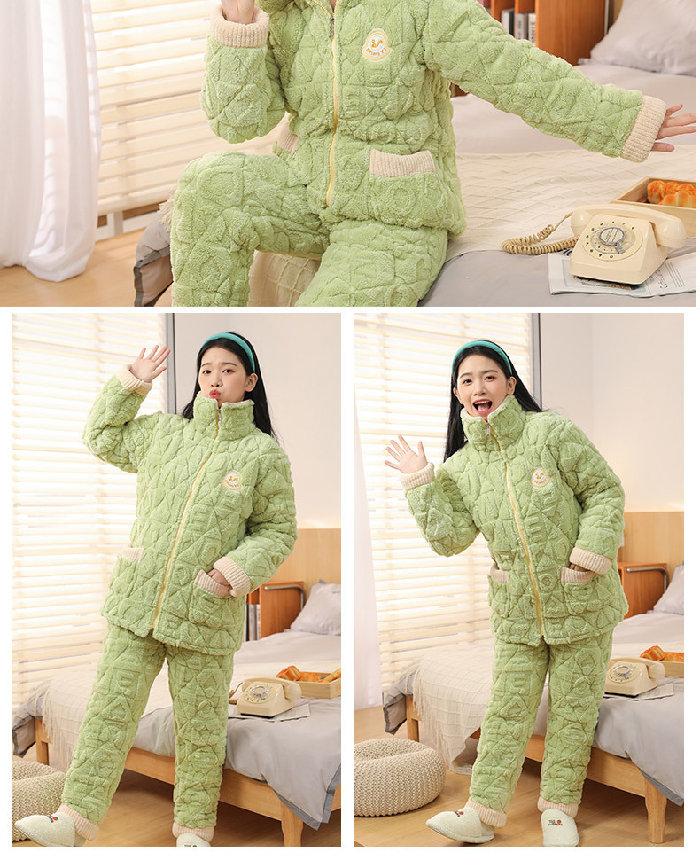 여성 성인 파자마 3 층 두꺼운 퀼트 파자마 여성의 기모 산호 양털은 따뜻한 집 옷을 입을 수 세트