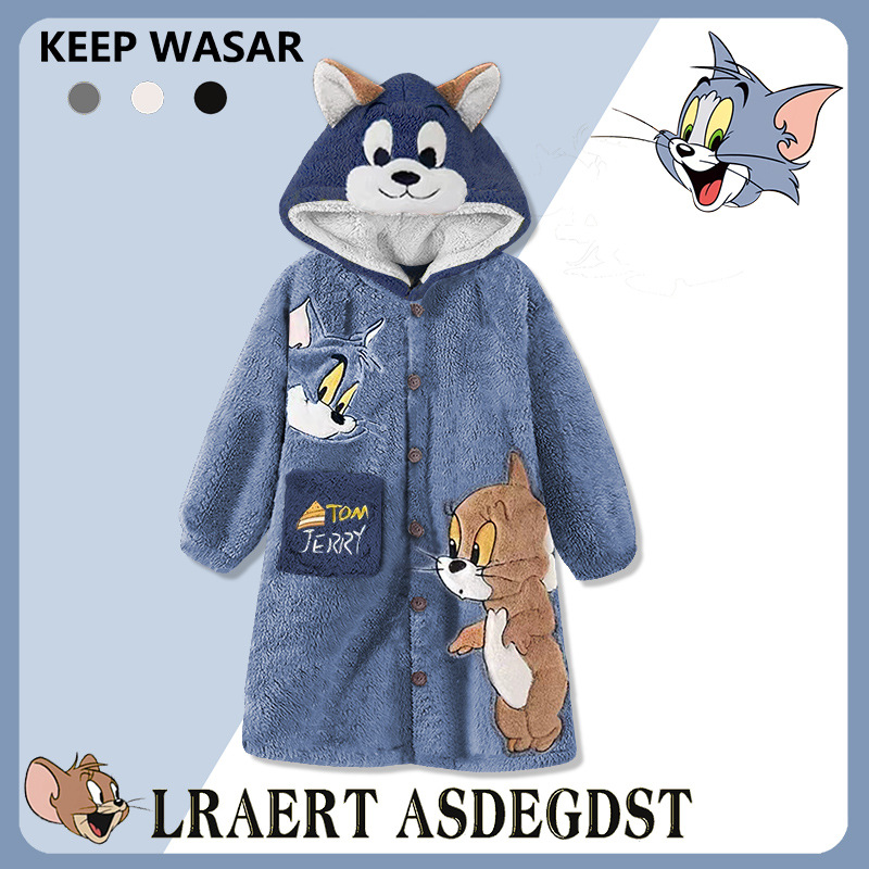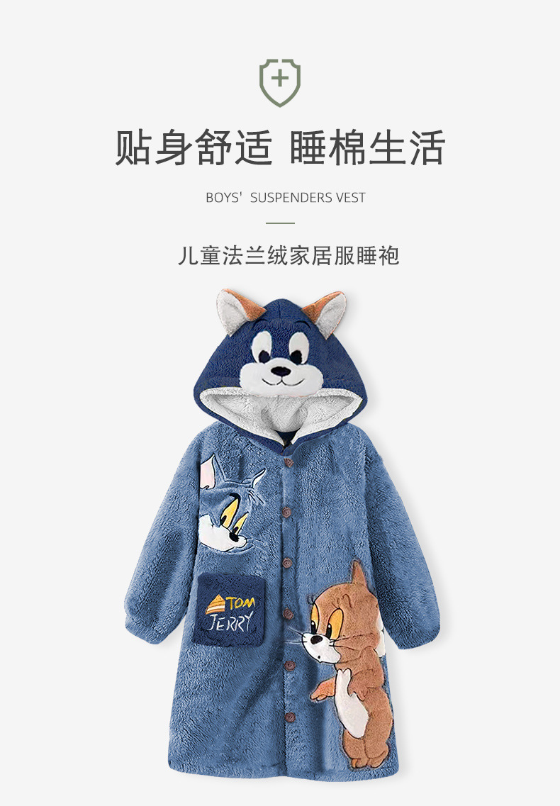 90-170cm 십대 만화 후드 카디건 나이트 가운 5-18 세 소년 따뜻한 플란넬 홈 재킷스토어 가기