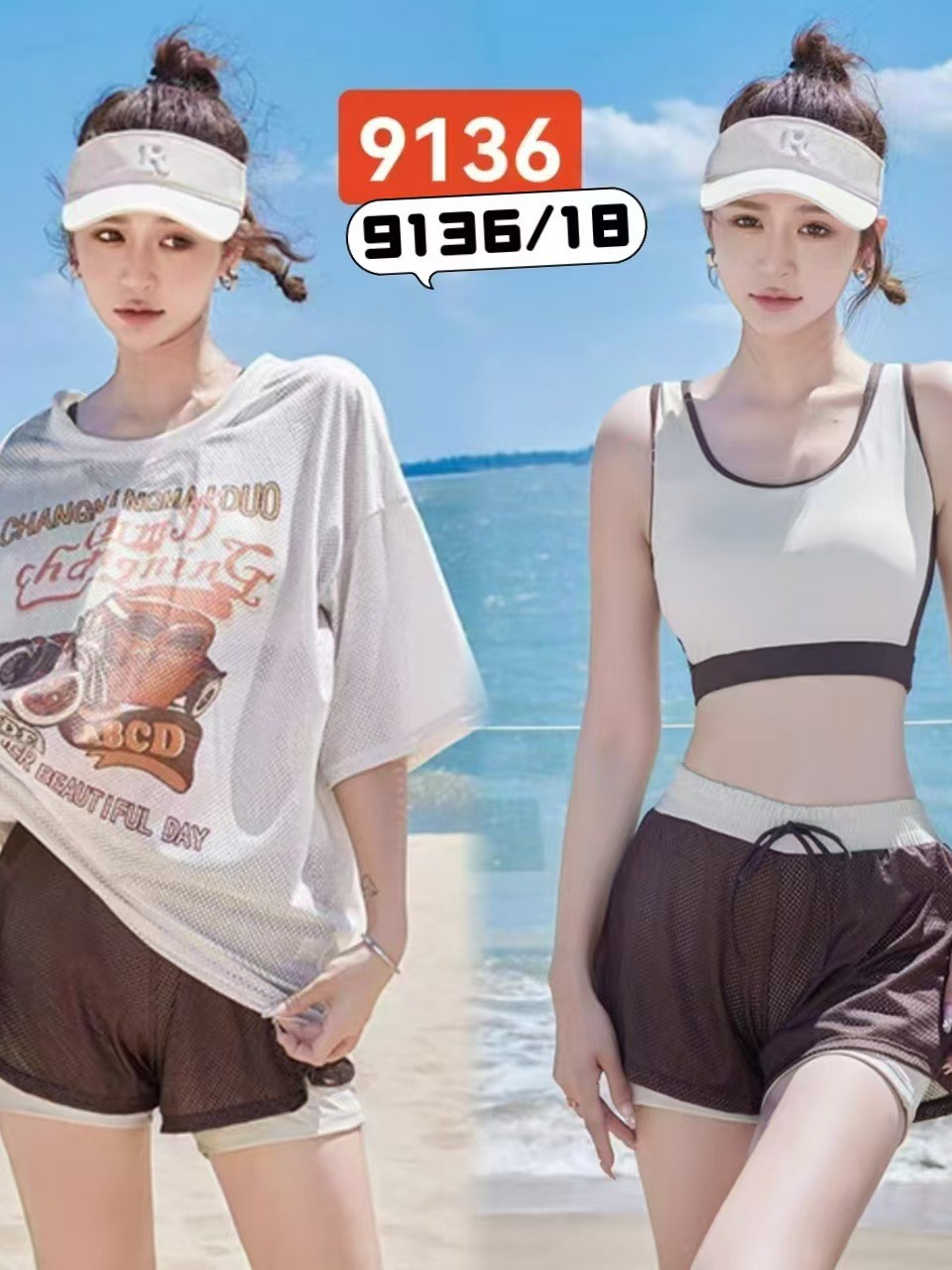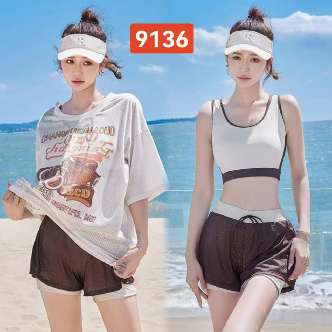 2024년 신상 여성용 분리형 3피스 반바지 만화 스포츠 스타일 수영복 53215스토어 가기