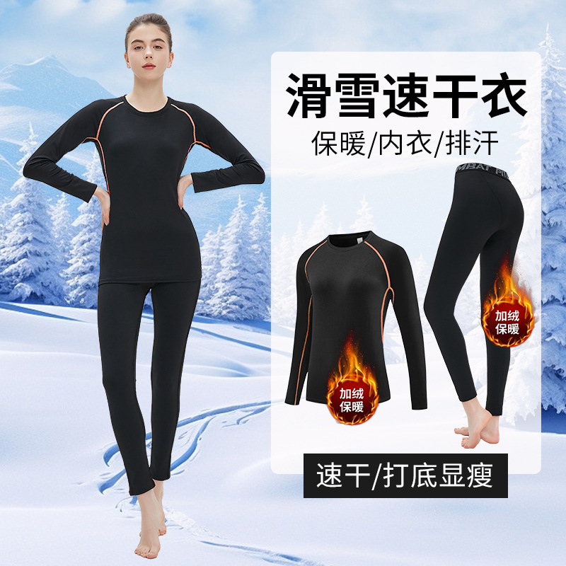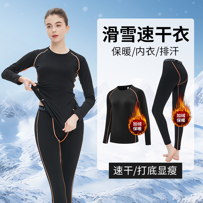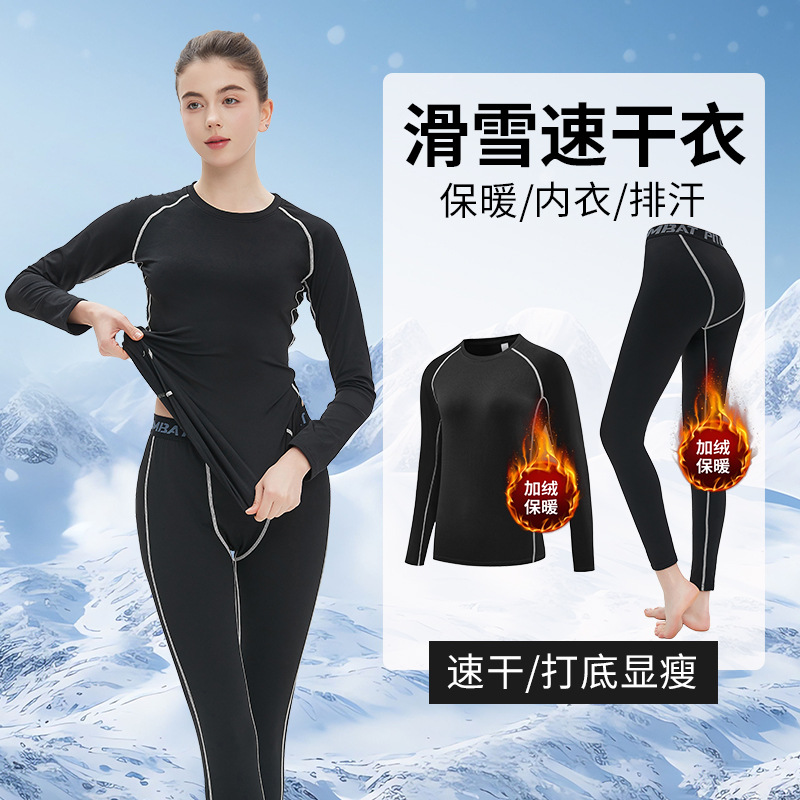 빠른 건조 의류 여성 스키 열 속옷 겨울 달리기 스포츠 세트 야외 기모 긴팔 등산 레깅스 바지스토어 가기