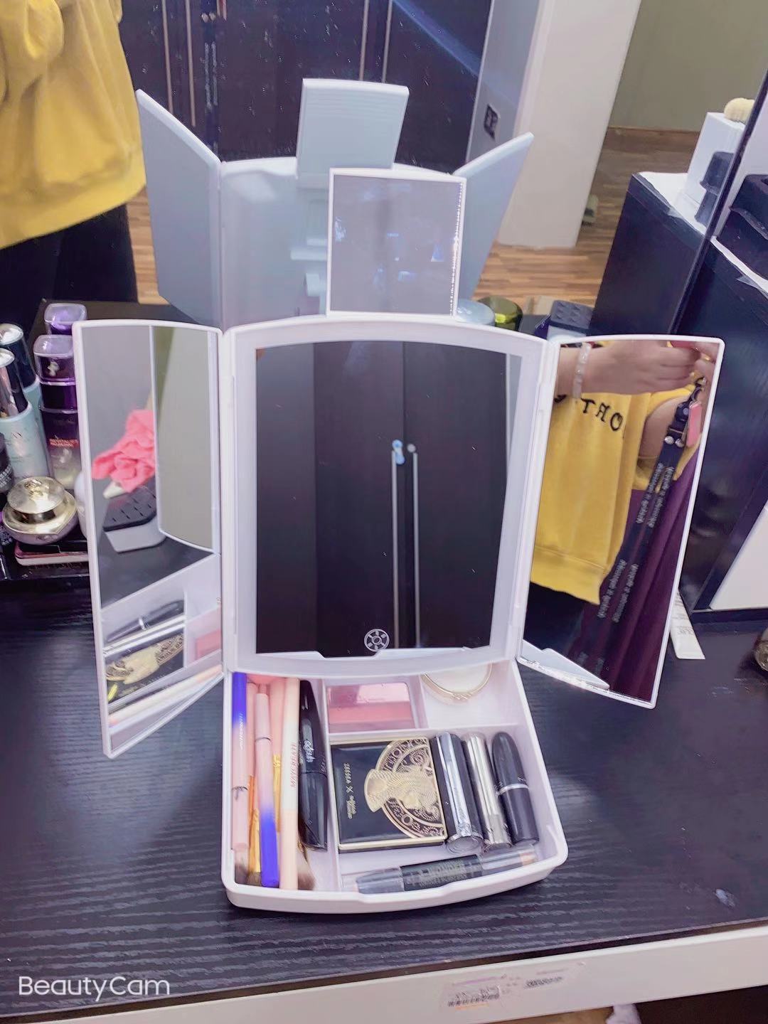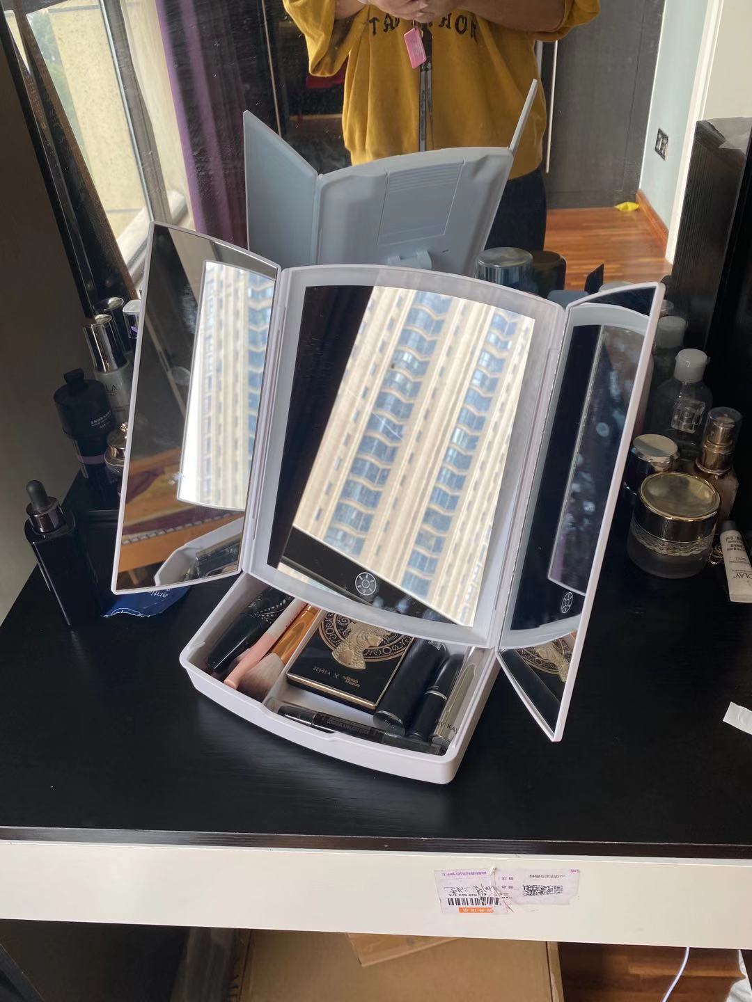 3 배 화장품 거울 LED 조명 저장 확대 빛나는 세면대 거울 데스크탑 화장품 거울스토어 가기