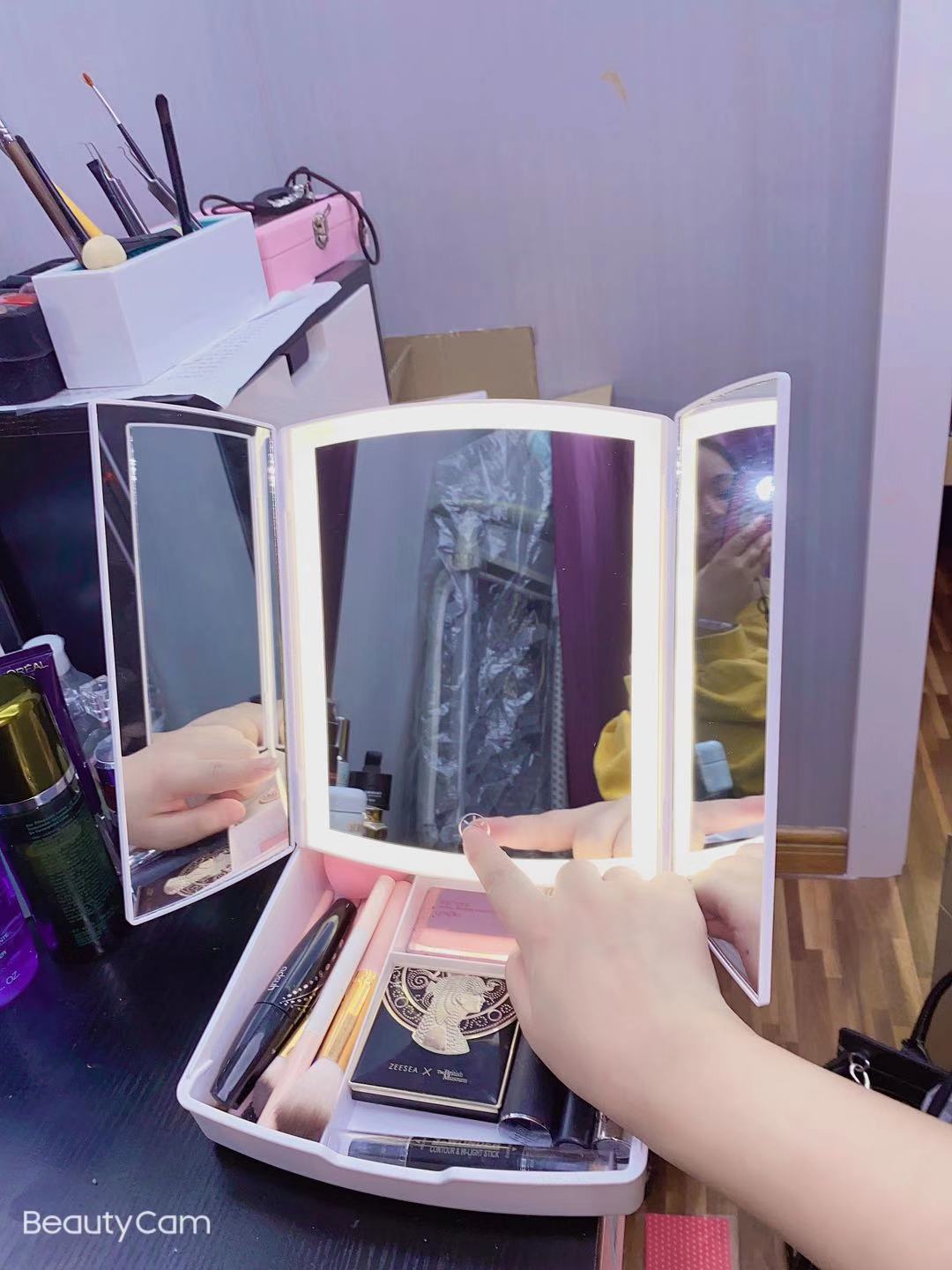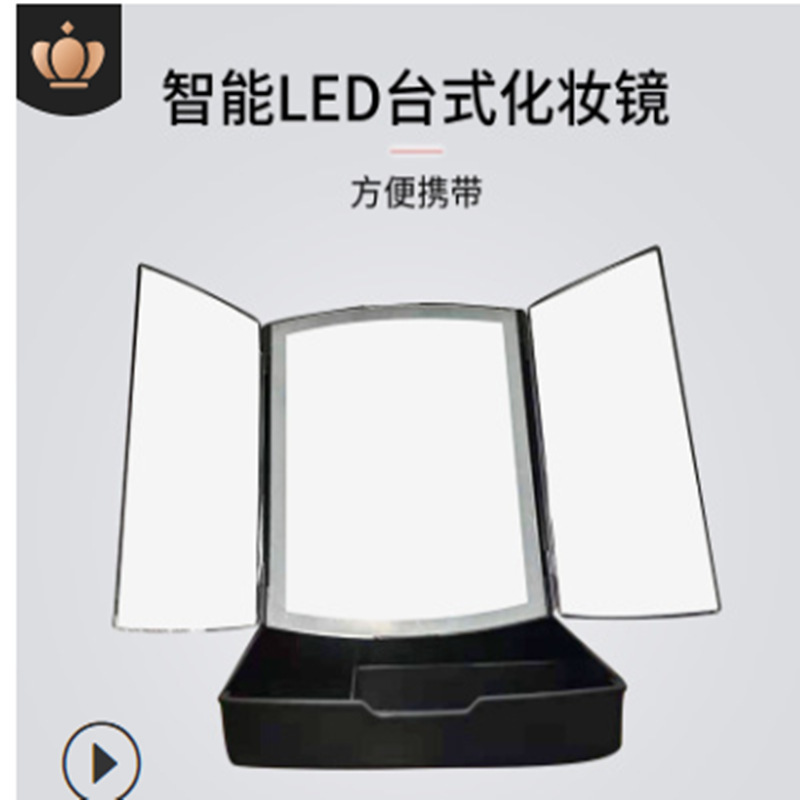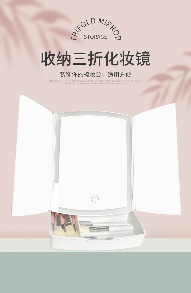 3 배 화장품 거울 LED 조명 저장 확대 빛나는 세면대 거울 데스크탑 화장품 거울