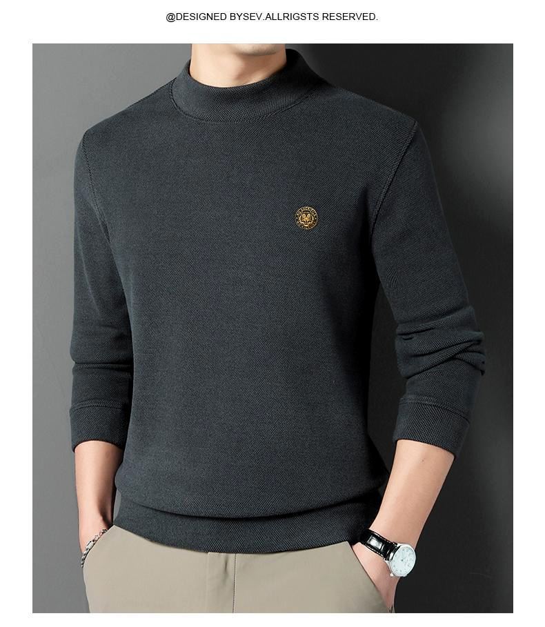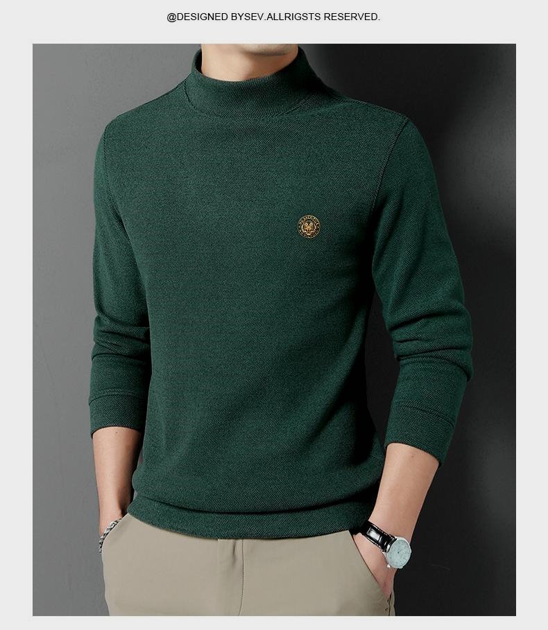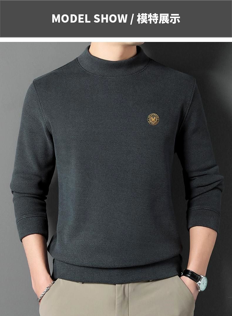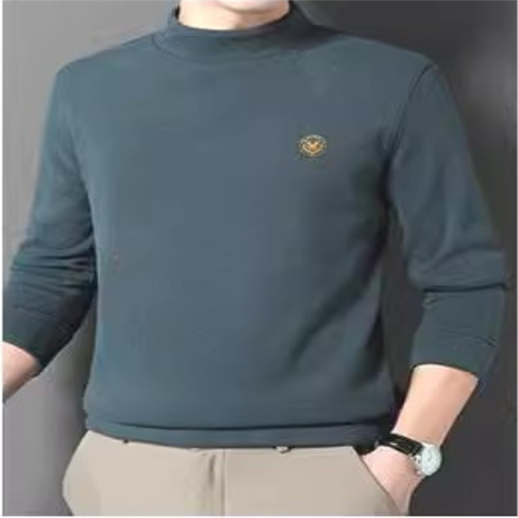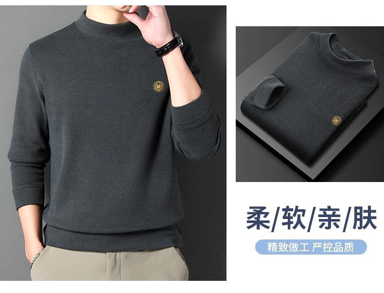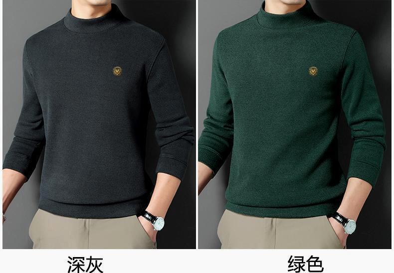 2023男装冬季男士德绒厚绒半高领打底保暖休闲色套头上衣