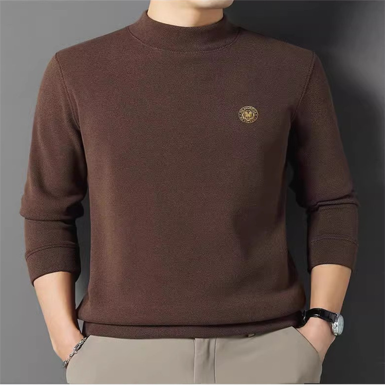 2024 남자 겨울 남자 벨벳 두꺼운 벨벳 세미 하이 넥 베이스 따뜻한 캐주얼 컬러 풀오버 탑