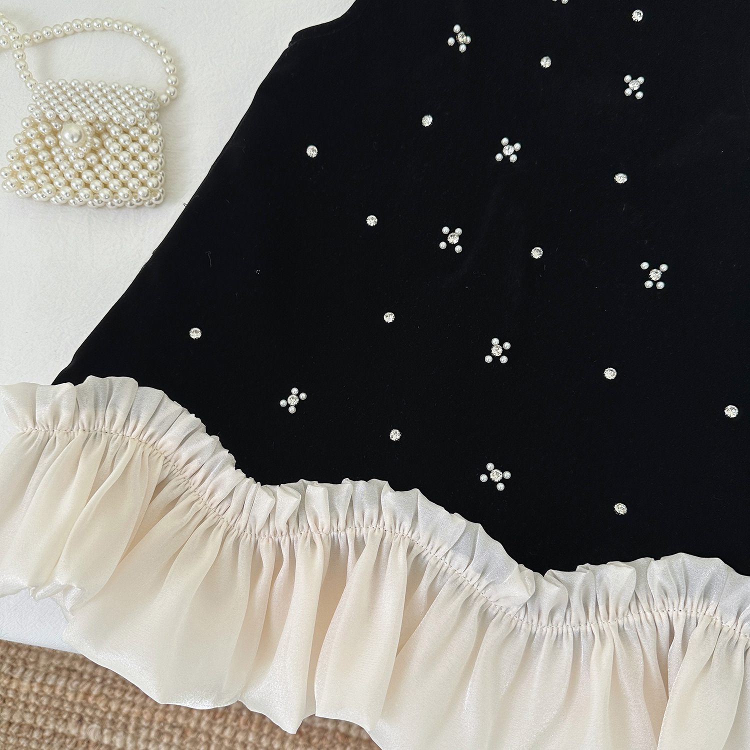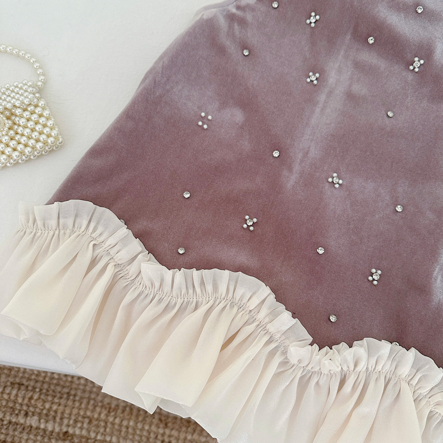 소녀 원피스 2024 겨울 새 어린이 황금 벨벳 공주 원피스 따뜻한 기모 베스 원피스