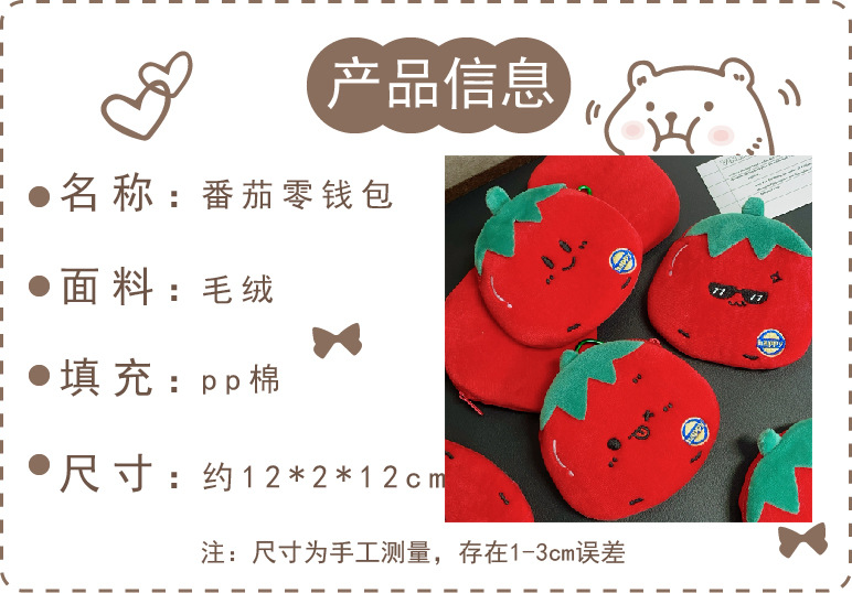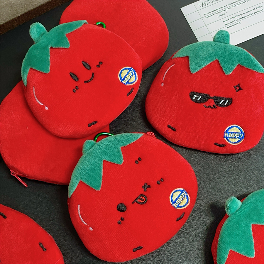 정품 귀여운 토마토 동전 지갑, 표정이 바뀌는 야채 플러시 지갑, 어린이 동전 및 잡화 수납 가방, 펜던트 선물스토어 가기