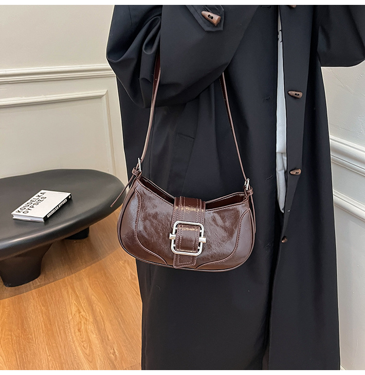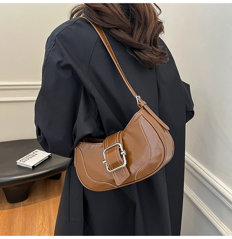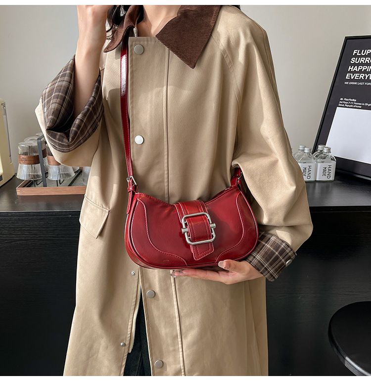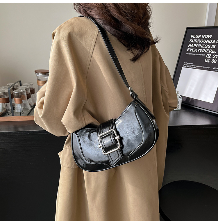 틈새 질감 빈티지 핫 소녀 오토바이 가방 바게트 가방 2024 새로운 특허 가죽 원 숄더 대각선 겨드랑이 가방스토어 가기