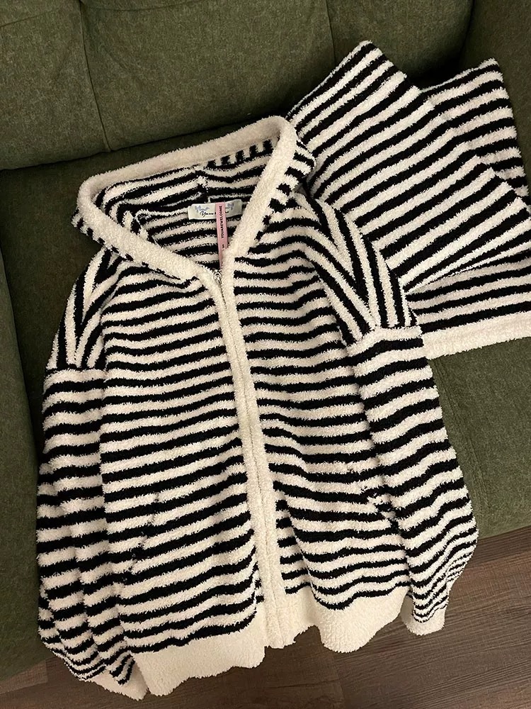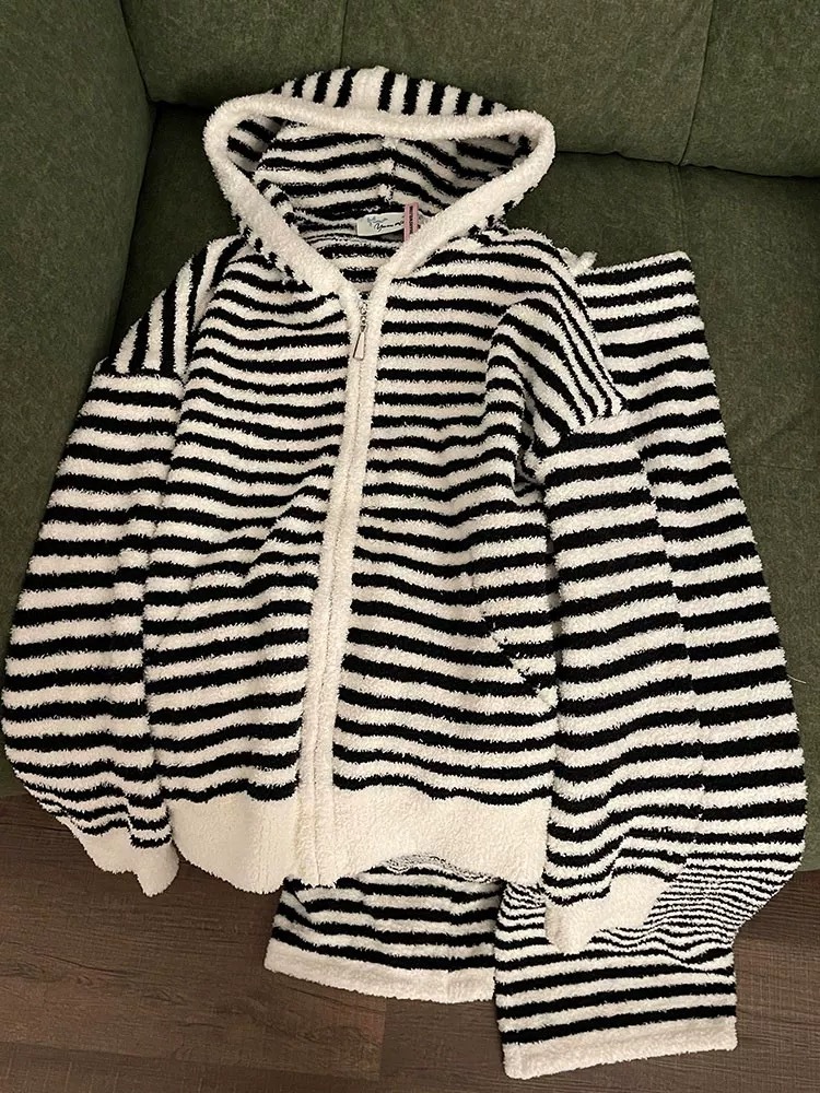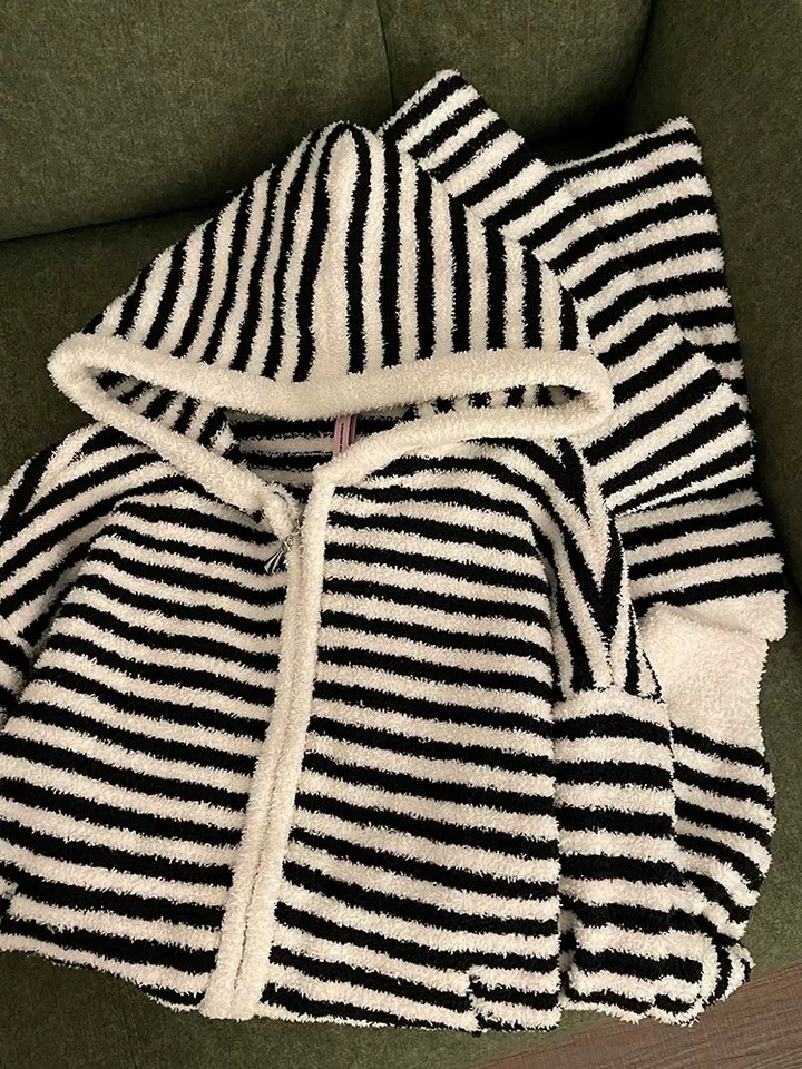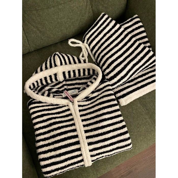소스 공장 새로운 잠옷 여성의 겨울 줄무늬 후드 고급 따뜻한 산호 양털 기모 홈 의류 겨울스토어 가기