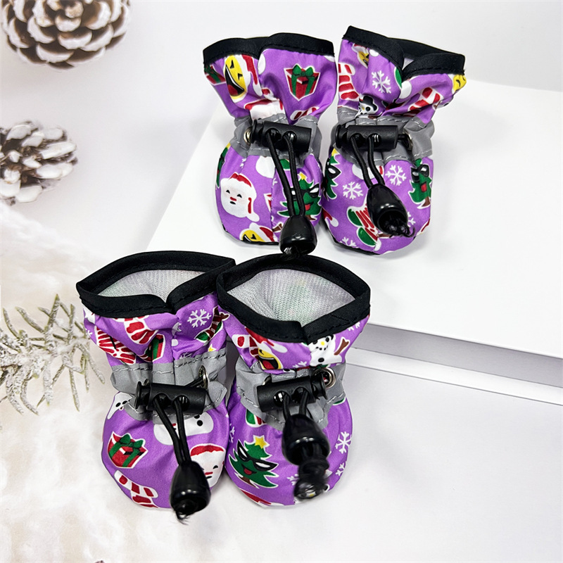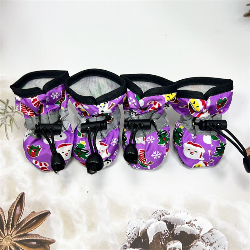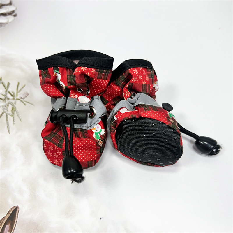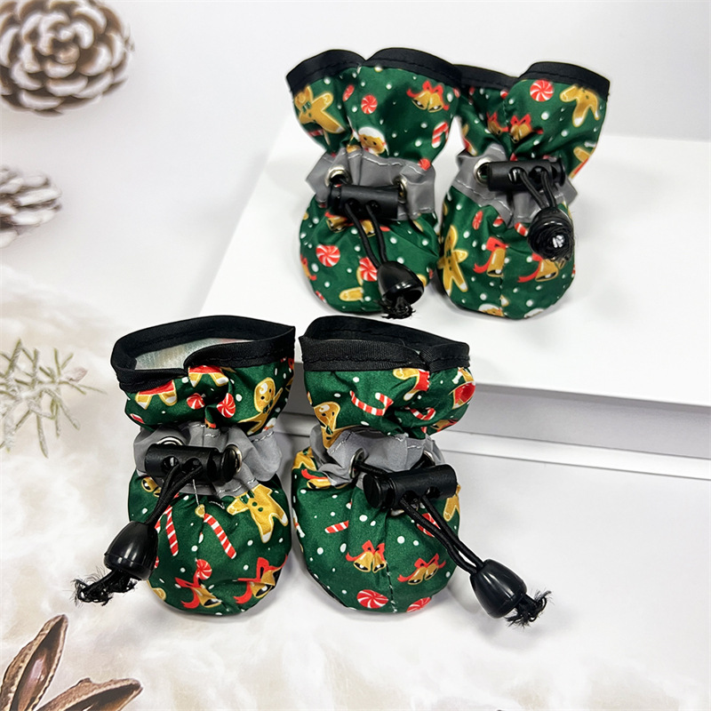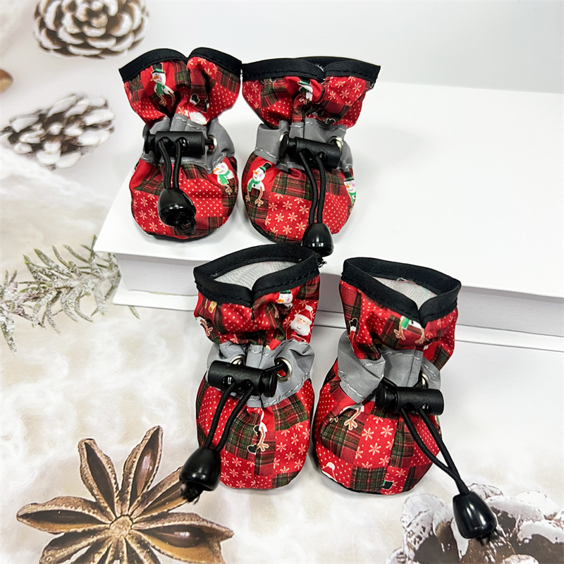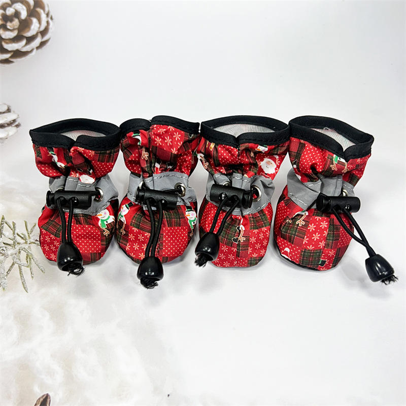 국경 간 개 신발 부드러운 밑창은 발을 떨어 뜨리지 않습니다. 중소 규모의 개 애완 동물 고양이 긁힘 방지 발 커버 크리스마스 사계절 신발 커버스토어 가기