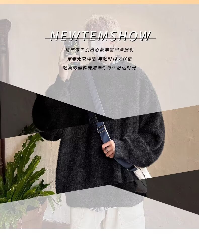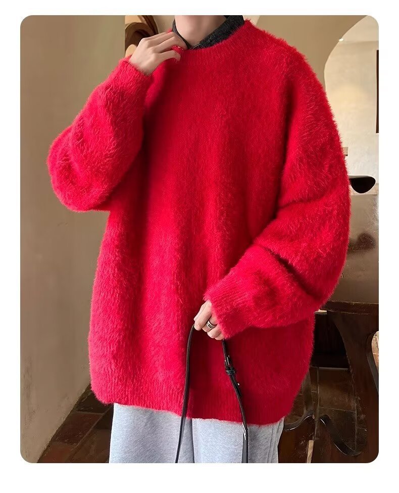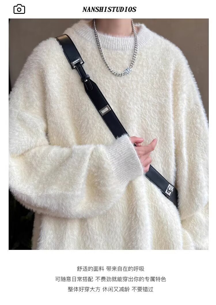 크루 넥 스웨터 남자 일본 솔리드 컬러 레트로 트렌디 브랜드 베이스 따뜻한 스웨터 탑 2024 새로운스토어 가기