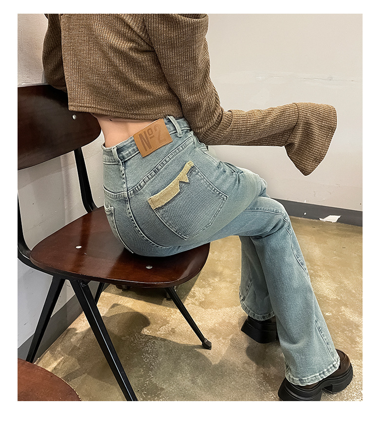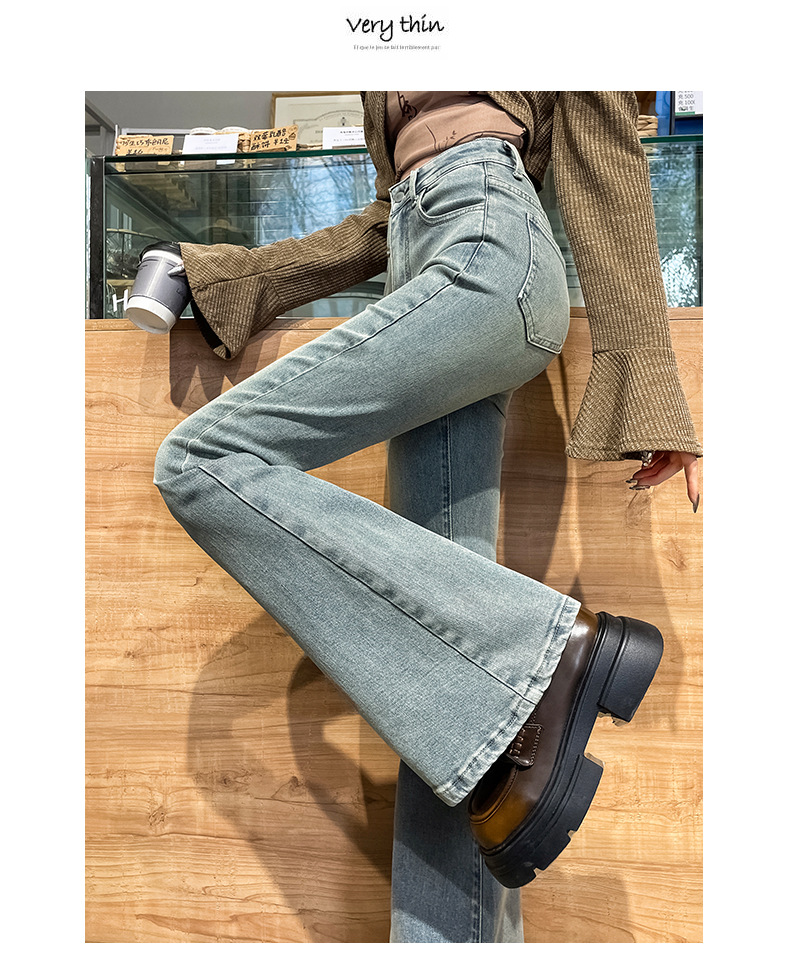 청바지 여성용 플라 팬츠 2024 가을과 겨울 패션 새로운 높은 허리 슬리밍 러프 엣지 마이크로 팬츠스토어 가기