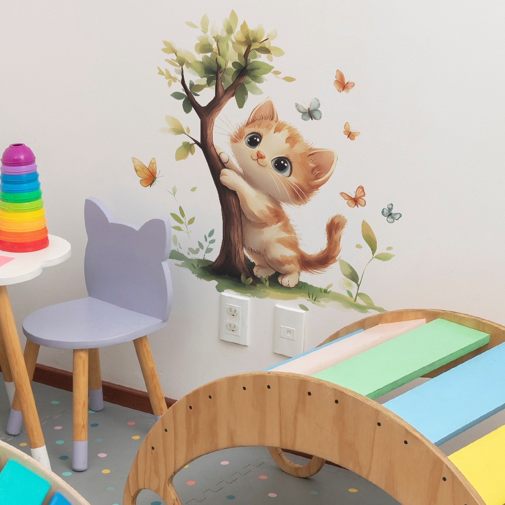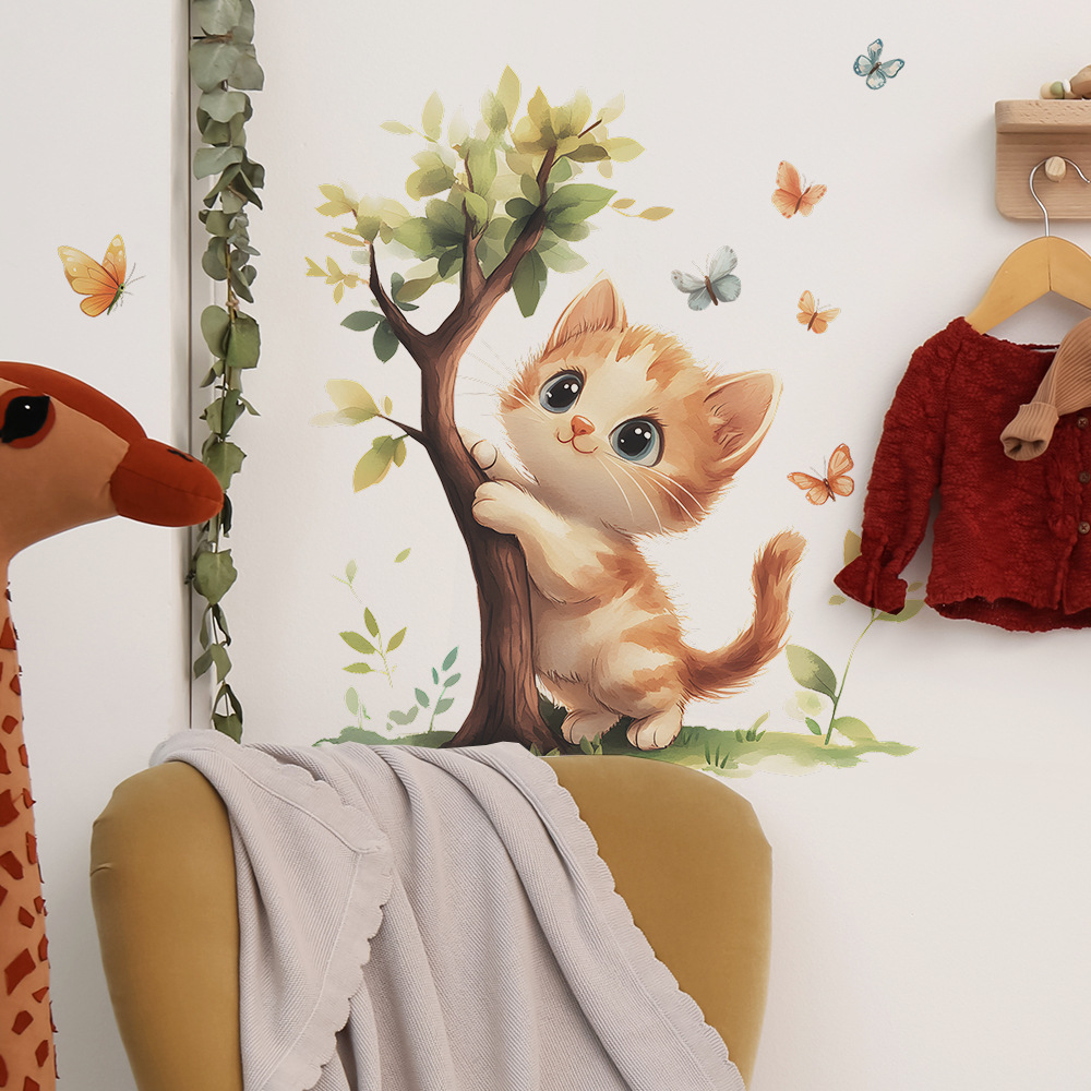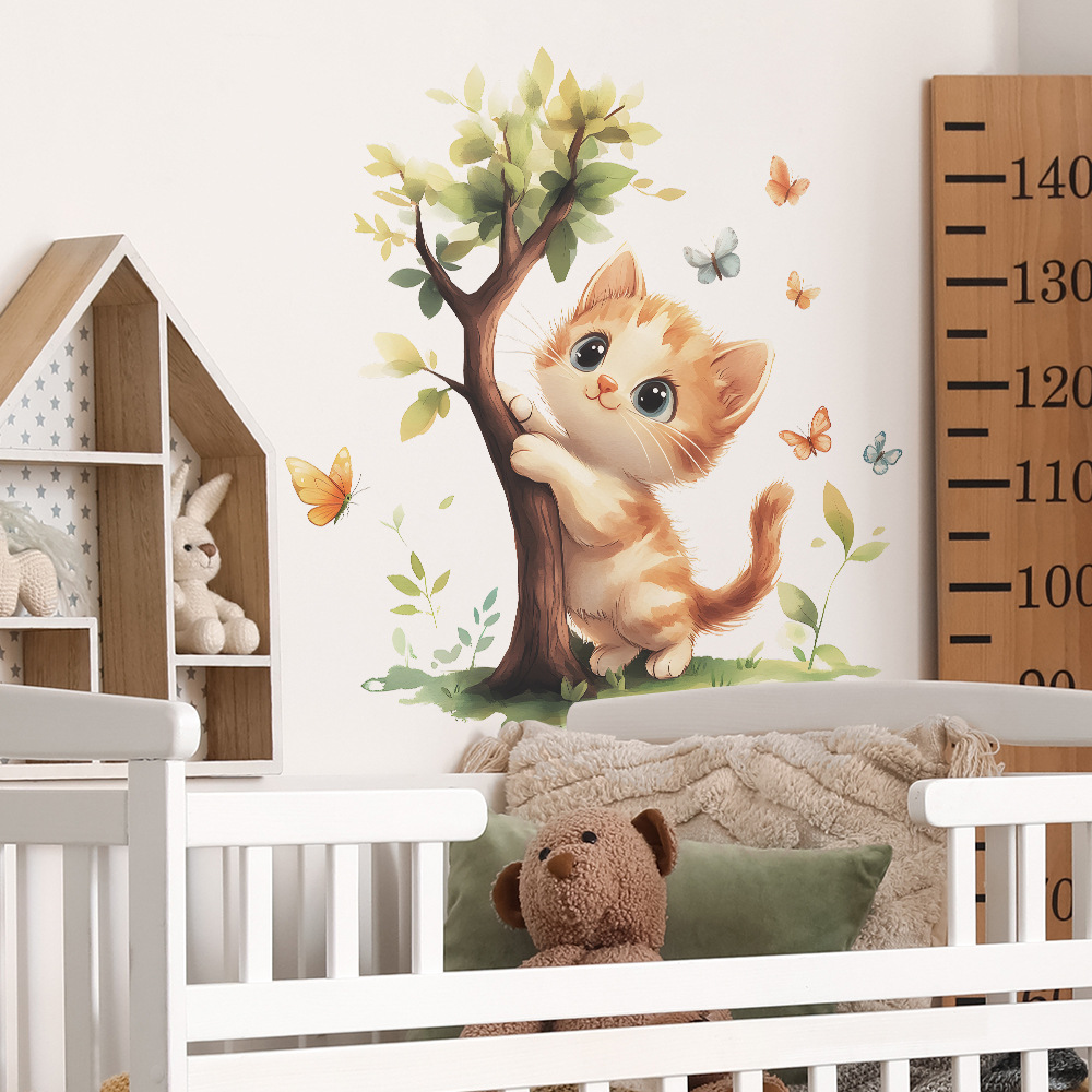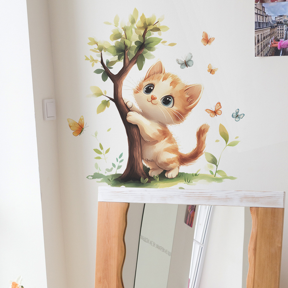 Fun-e195 귀여운 작은 오렌지 고양이 묘목 침실 거실 집 배경 미화 장식 벽 스티커 도매