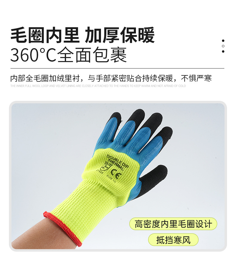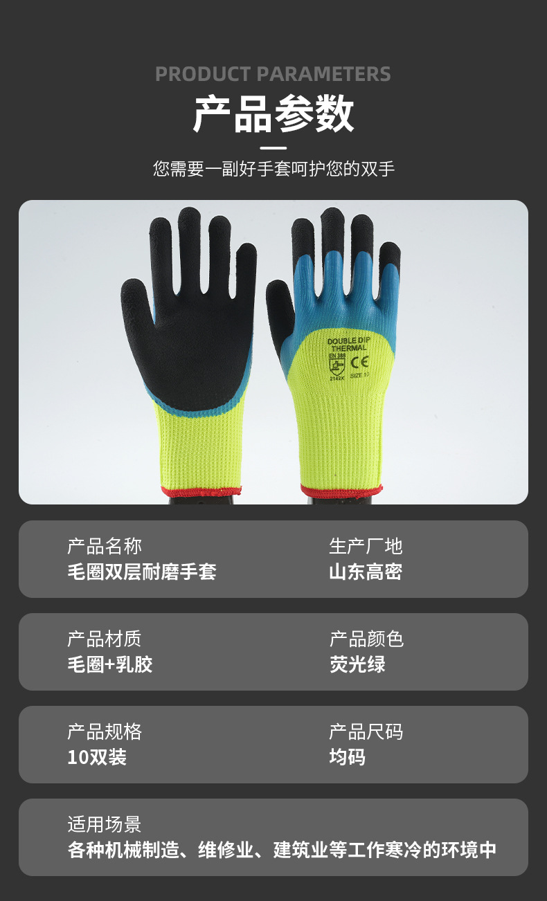 겨울 두꺼운 테리 더블 레이어 담그는 내마모성 장갑 차가운 따뜻한 내마모성 노동 보호 장갑 도매