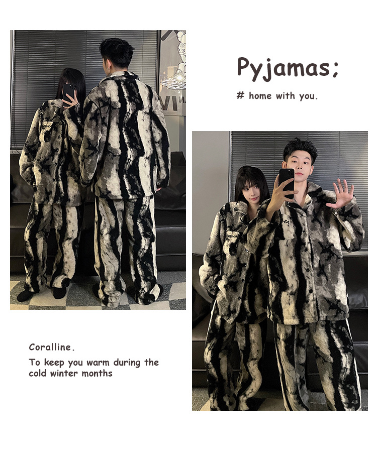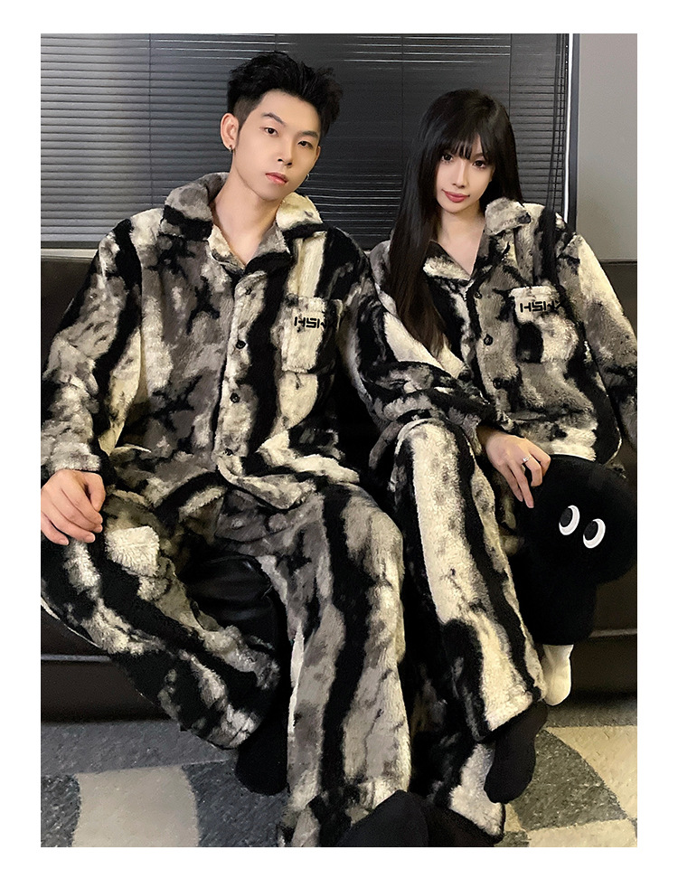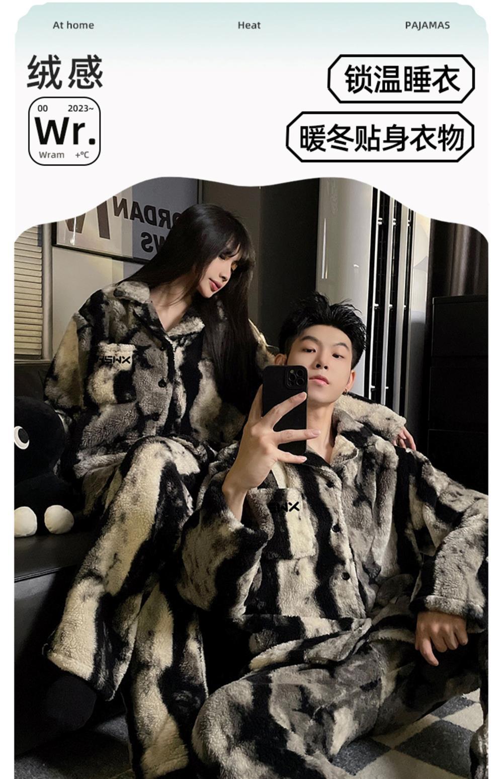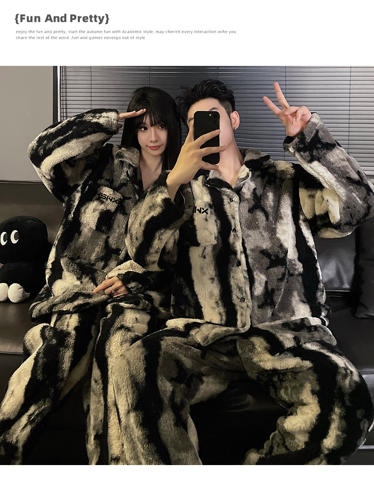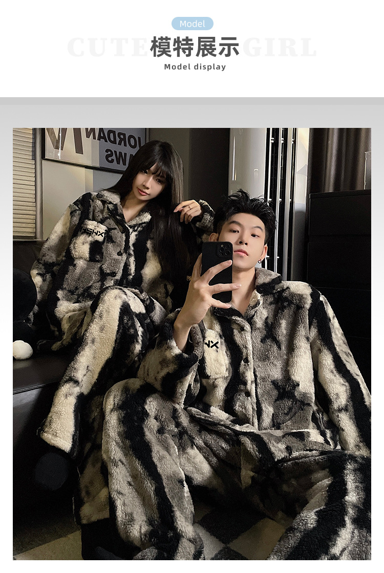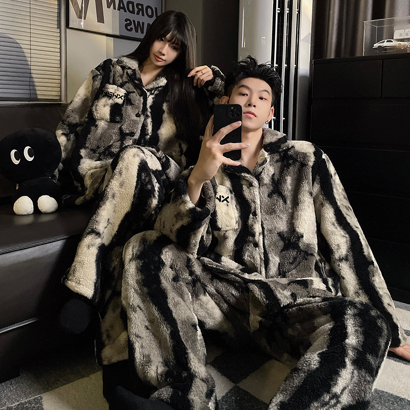 일본 산호 양털 커플 잠옷 여자 가을과 겨울 기모 두꺼운 카디건 따뜻한 고급 남성 홈 의류 세트스토어 가기