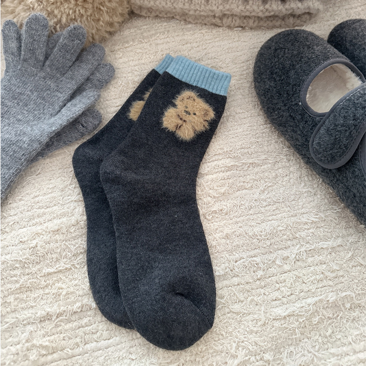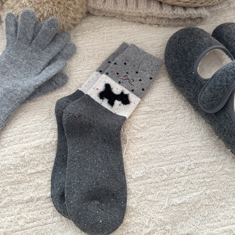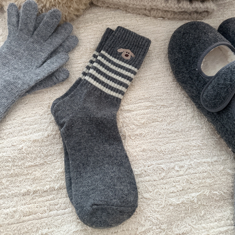 양말 여성의 겨울 회색 두꺼운 따뜻한 양모 양말 줄무늬 웨이브 도트 강아지 더미 양말 작은 빨간 책 같은 스타일 여성 양말스토어 가기