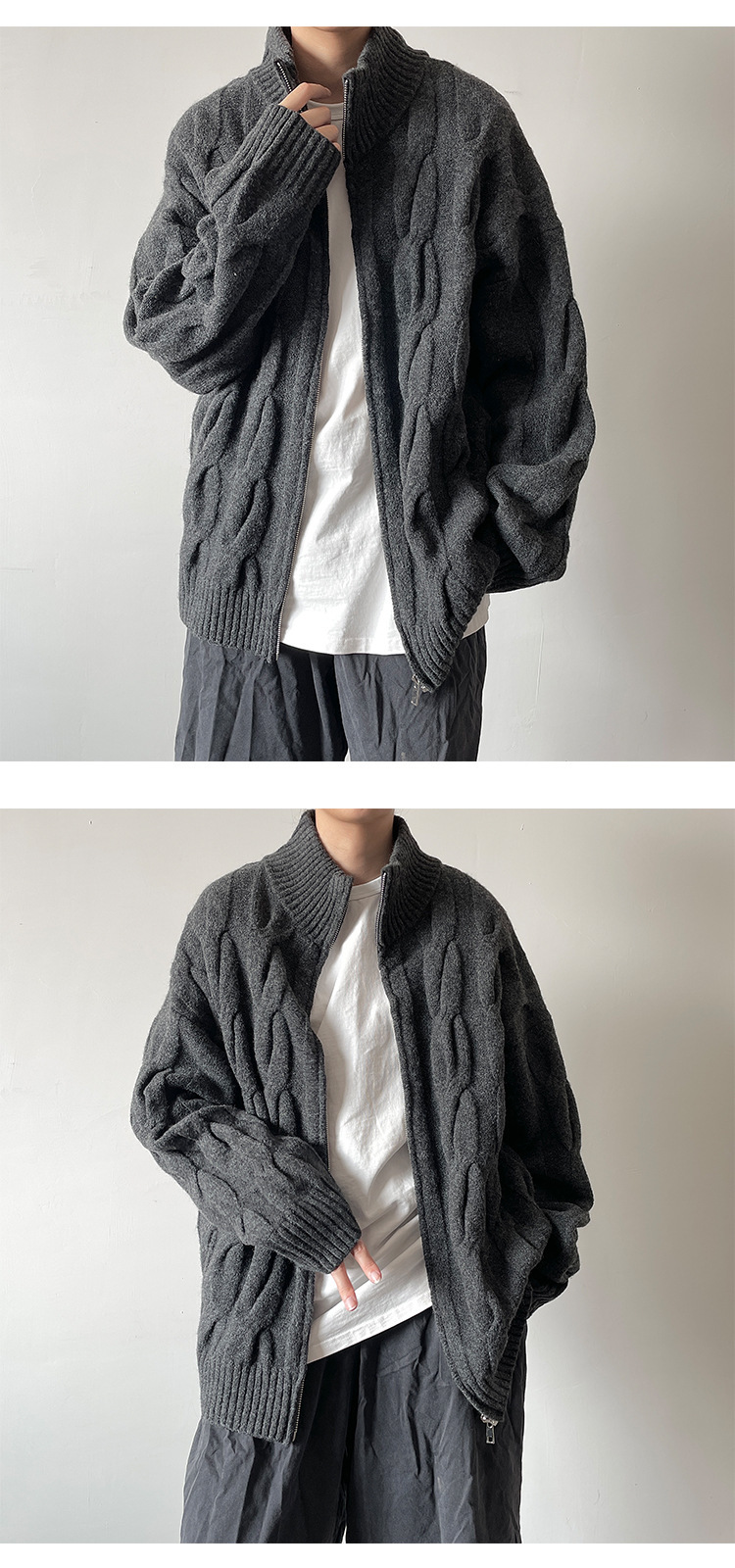 남성과 여성을위한 빈티지 아메리칸 스타일 블루 트위스트 지퍼 카디건 스웨터 느슨한 캐주얼 게으른 니트웨어 재킷스토어 가기