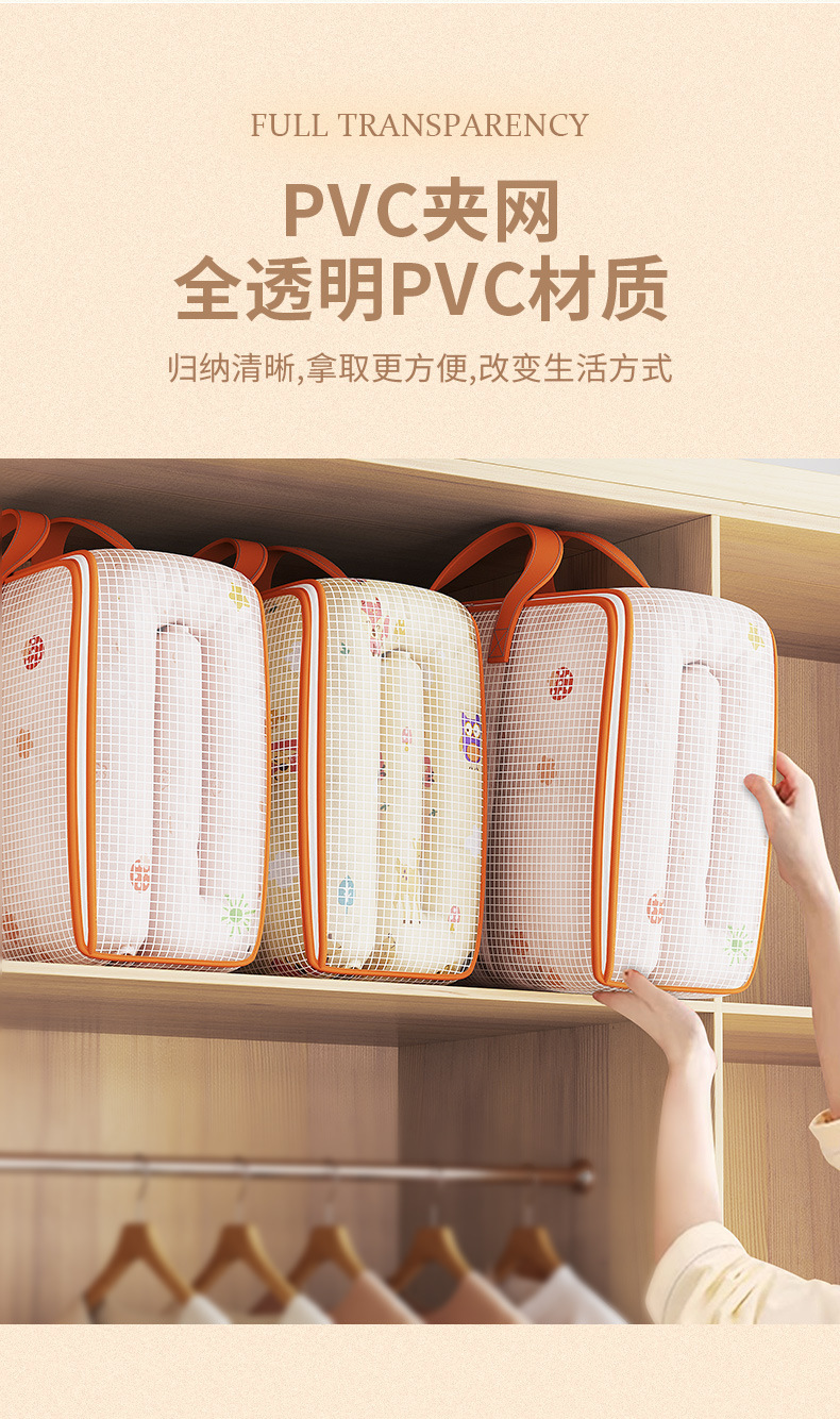PVC 클램프 그물 이동 가방 투명한 이불 다기능 저장 가방 가정용 의류 보관 상자 방수 및 습기 방지스토어 가기