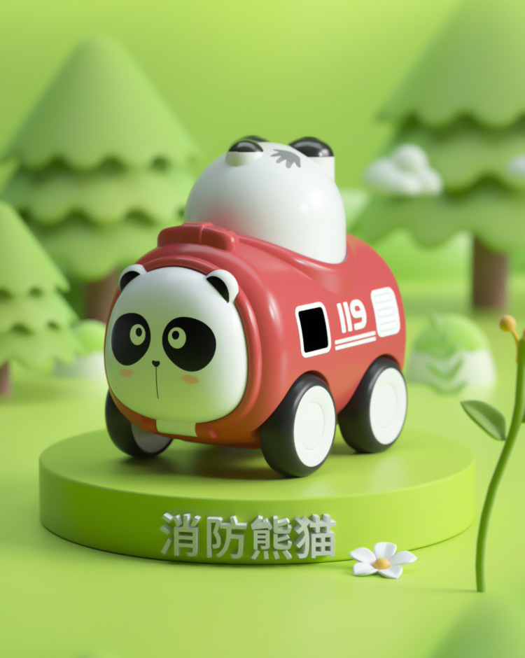 • 빨간 누름 엉덩이 동물 자동차 - 소방 팬더