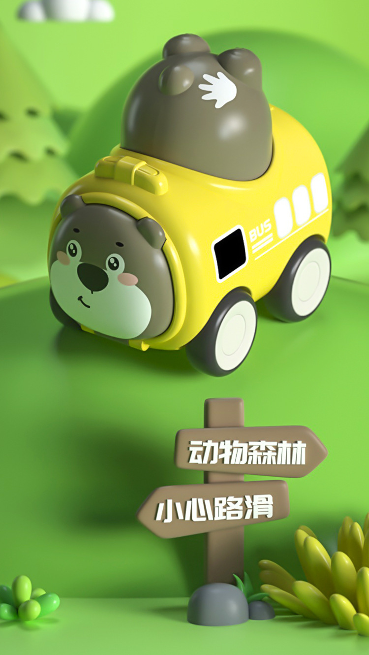 • 노란색 푸시 엉덩이 동물 자동차 - 버스 곰