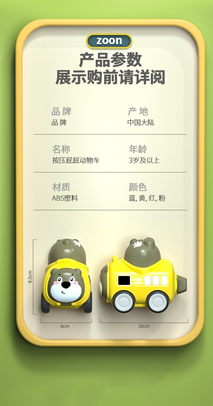 귀여운 재미 장난감 엉덩이 프레스 소년 관성 동물 자동차 소녀 아기 만화 가을 저항하는 팬더 프레스 카스토어 가기