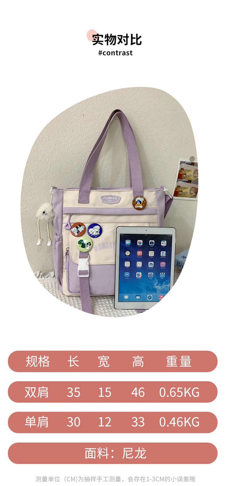 3 피스 가방 여성 중학생 간단한 다용도 여행 배낭 여대생 어깨 가방 경량 어깨 가방 유행스토어 가기