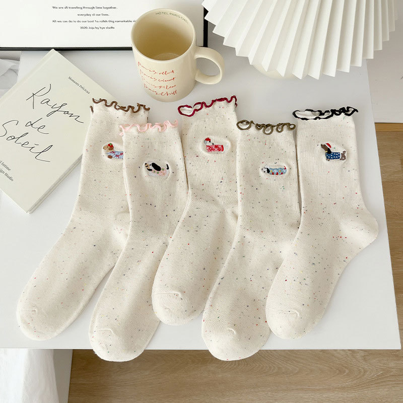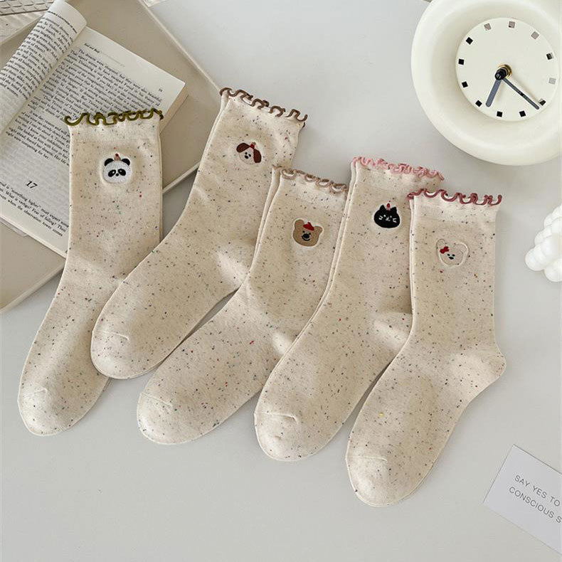 [팩토리 아울렛] 레이스양말 어린이 한국식 신동풍 볼매듭 긴튜브 쌓인 양말 가을과 겨울 귀걸이 양말
