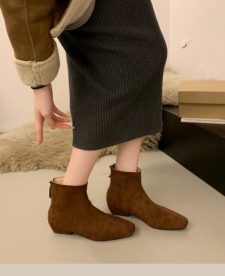 가을 산책 ~ 한국 작은 짧은 부츠 조커 서리 웨스턴 부츠 머리 안쪽 높이 발목 부츠 여성의 겨울 새로운