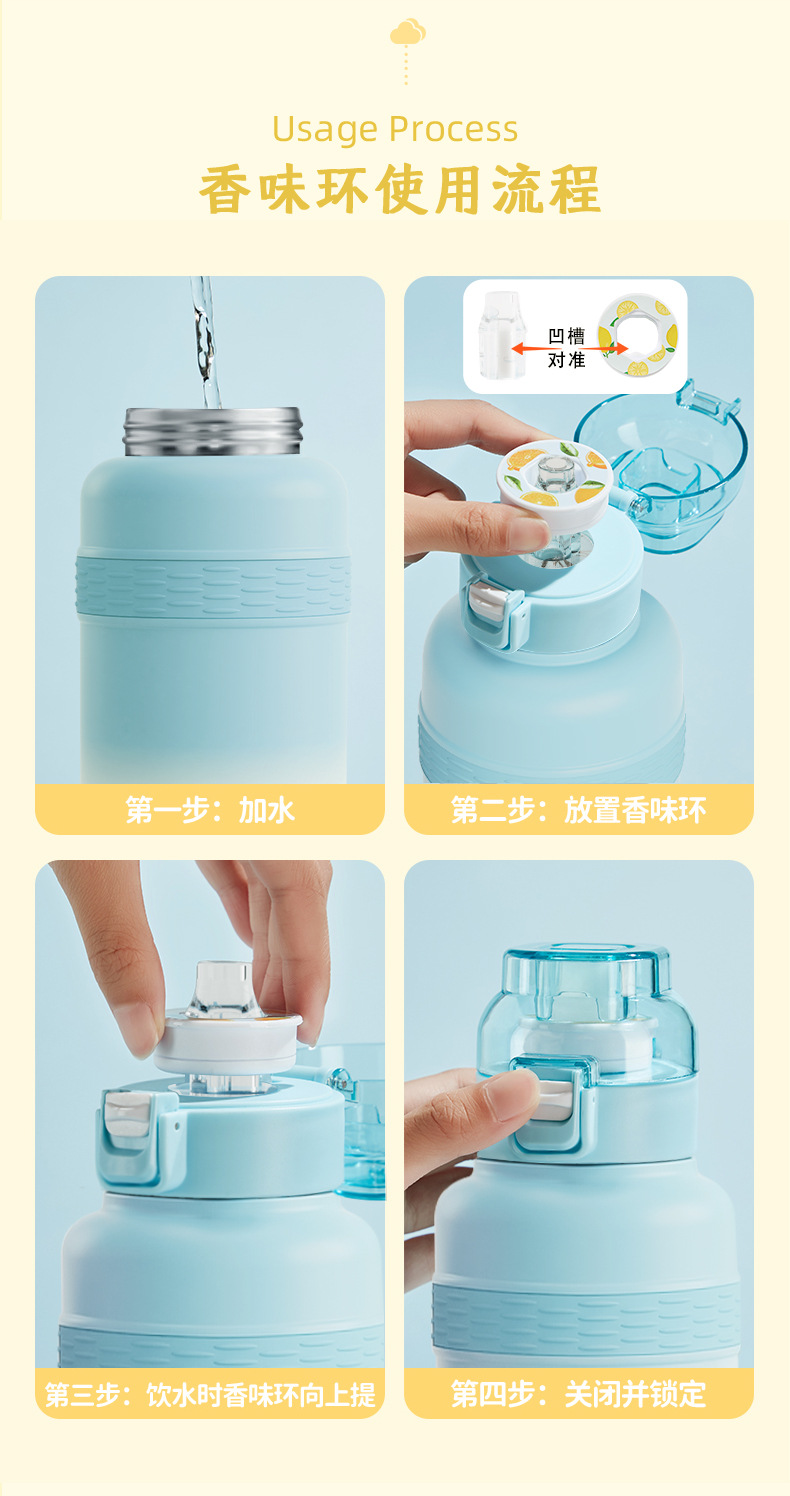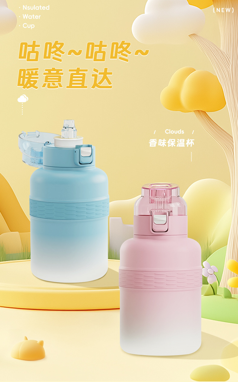 과일향 물컵 신형 스테인리스 보온병 창의적인 디자인 600ml 빨대 스포츠 학생 어린이 대용량