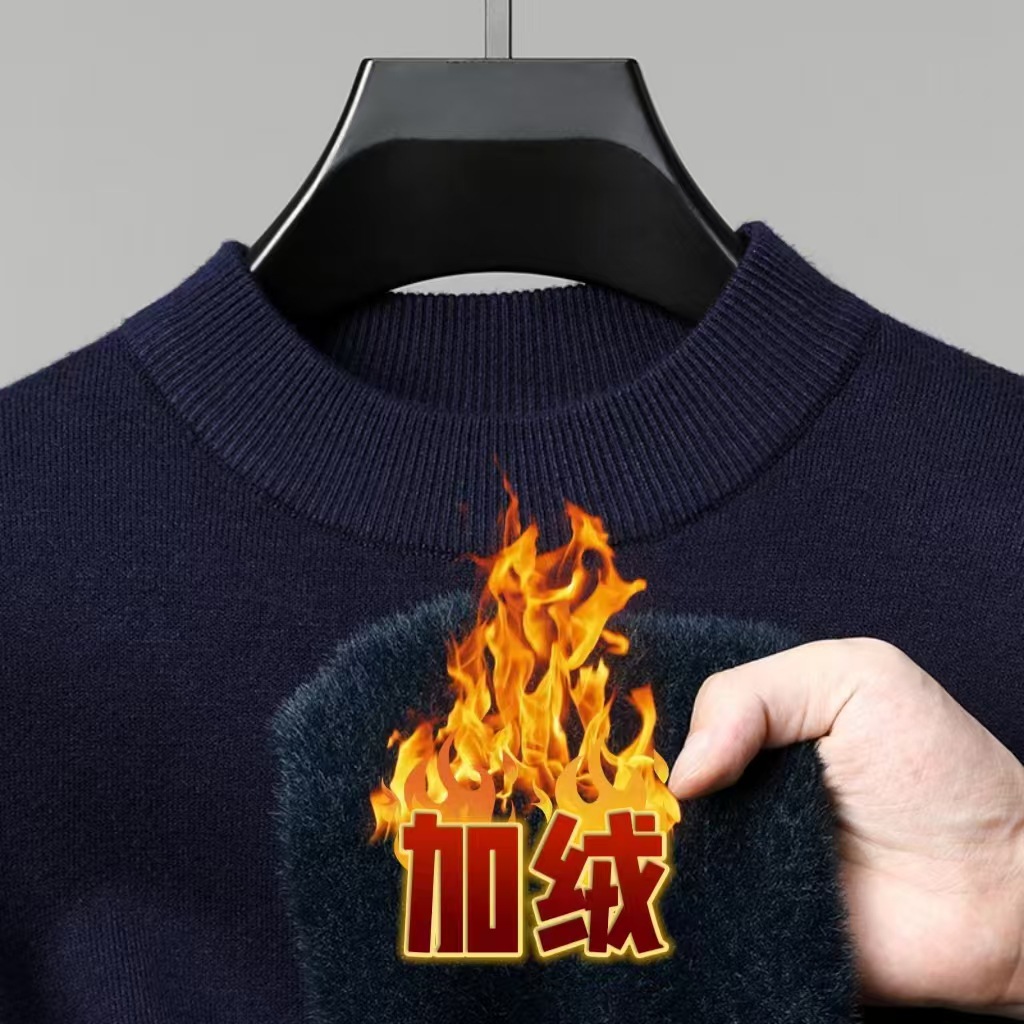 겨울 새 남자 울 스웨터 기모 원피스 벨벳 긴팔 남자 스웨터 하프 터틀넥 따뜻한 올 매치 스웨터 남성용스토어 가기