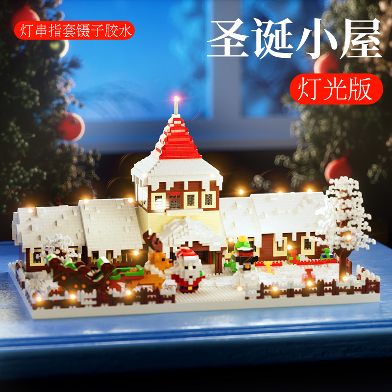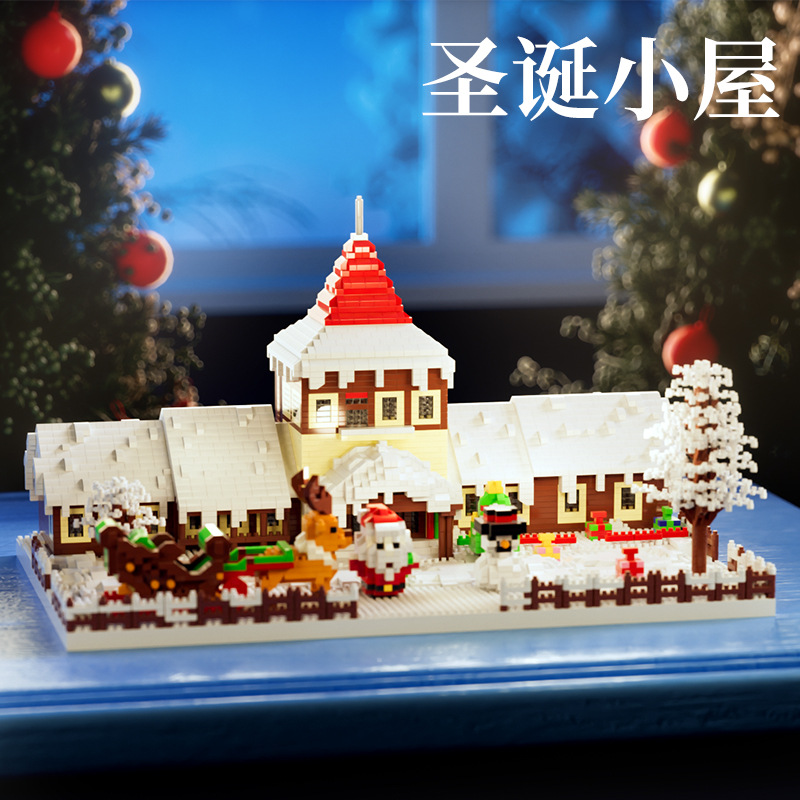 만화 빌딩 블록 크리스마스 캐빈 레고 마이크로 입자 빌딩 블록과 호환 어린이 교육 조립 장난감 여성을위한 크리 에이 티브 장식품스토어 가기