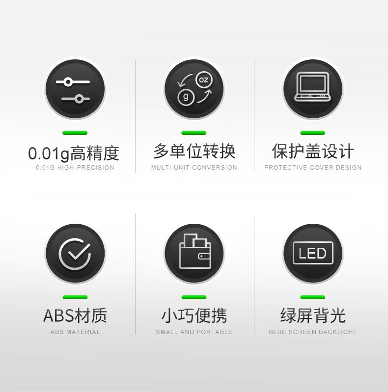 规格:100g/0.01,200g×0.01g,300g/0.01g,500g/0.01g,1000g/0.01g