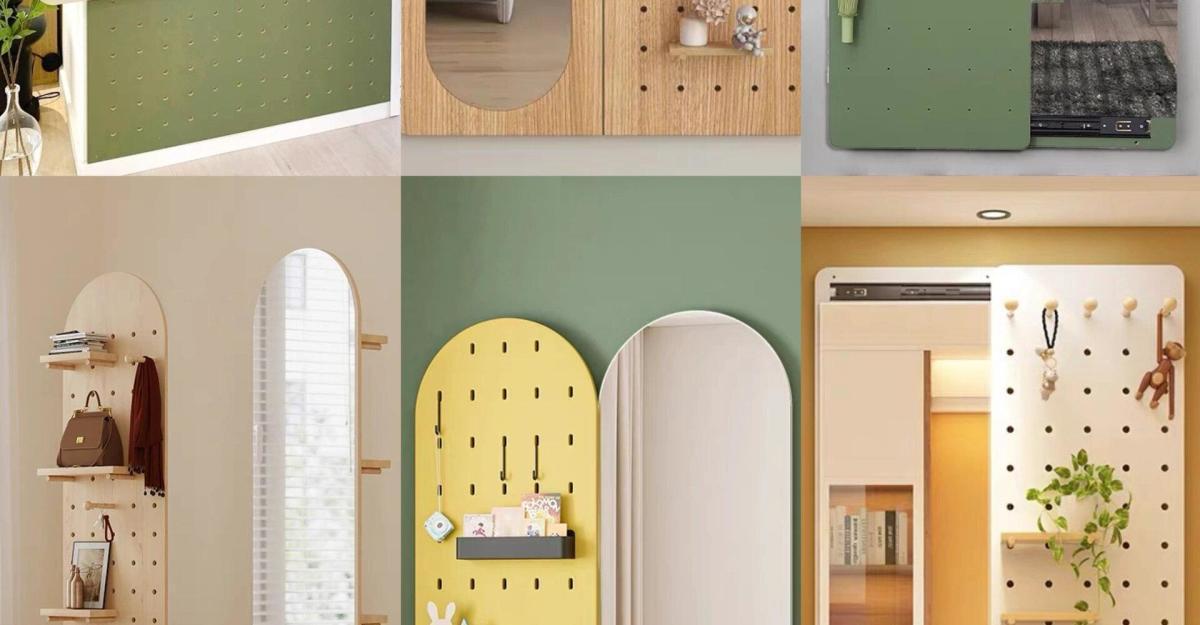 구멍 보드 단단한 나무 매달려 벽 랙 주방 저장 나무 배경 장식 벽 디스플레이 랙 현관 도매