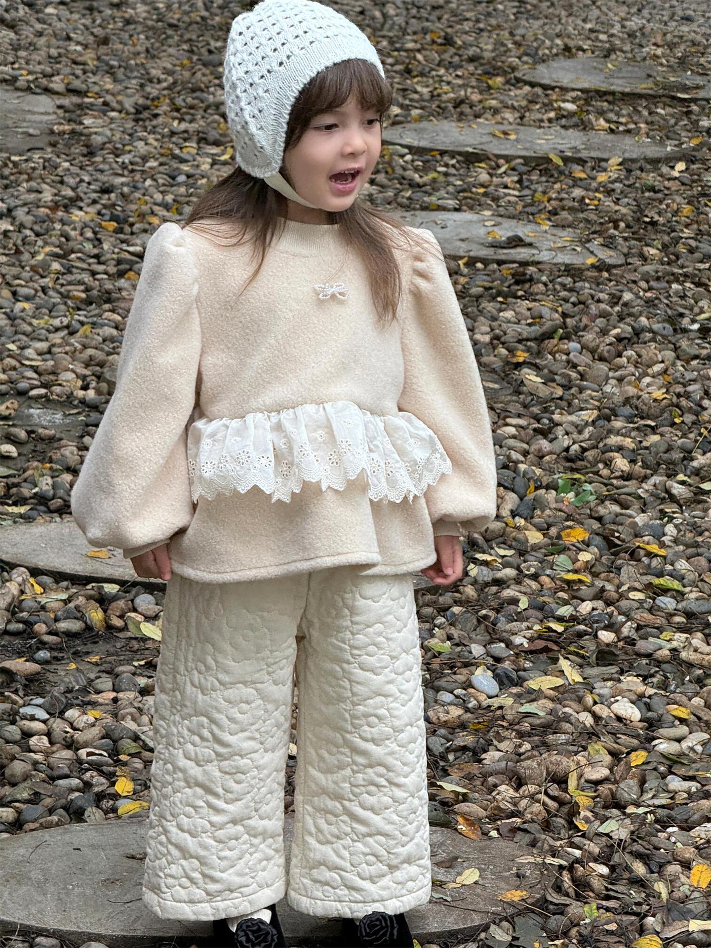 뾰족한 계란 한국 아동복 2024 년 겨울 새 소녀상 콜라주 구슬 귀여운 풀오버 두꺼운 봉제스토어 가기