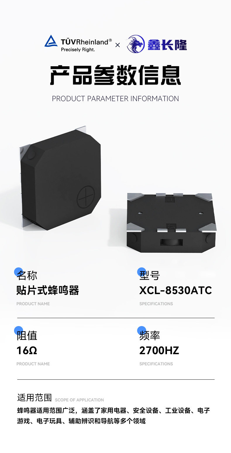 SMD8530 전자기 패치 버저 3.6V 패시브 16ohm 8.5*8.5*3mm 측면 발음 버저