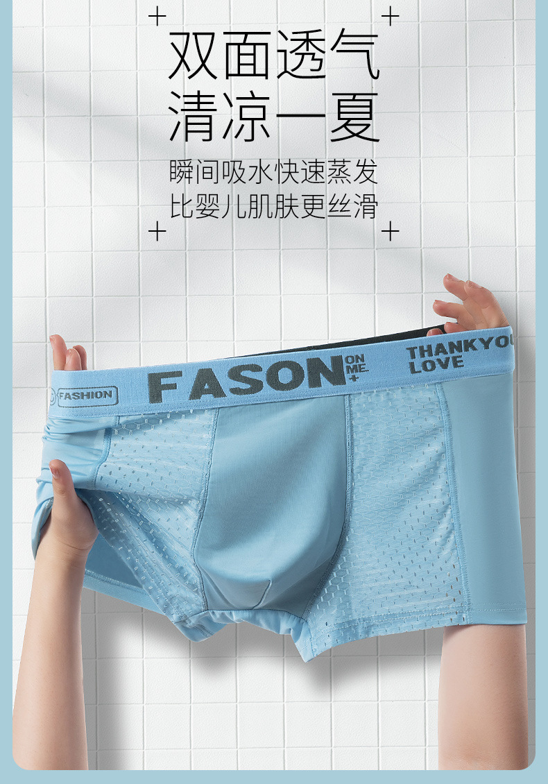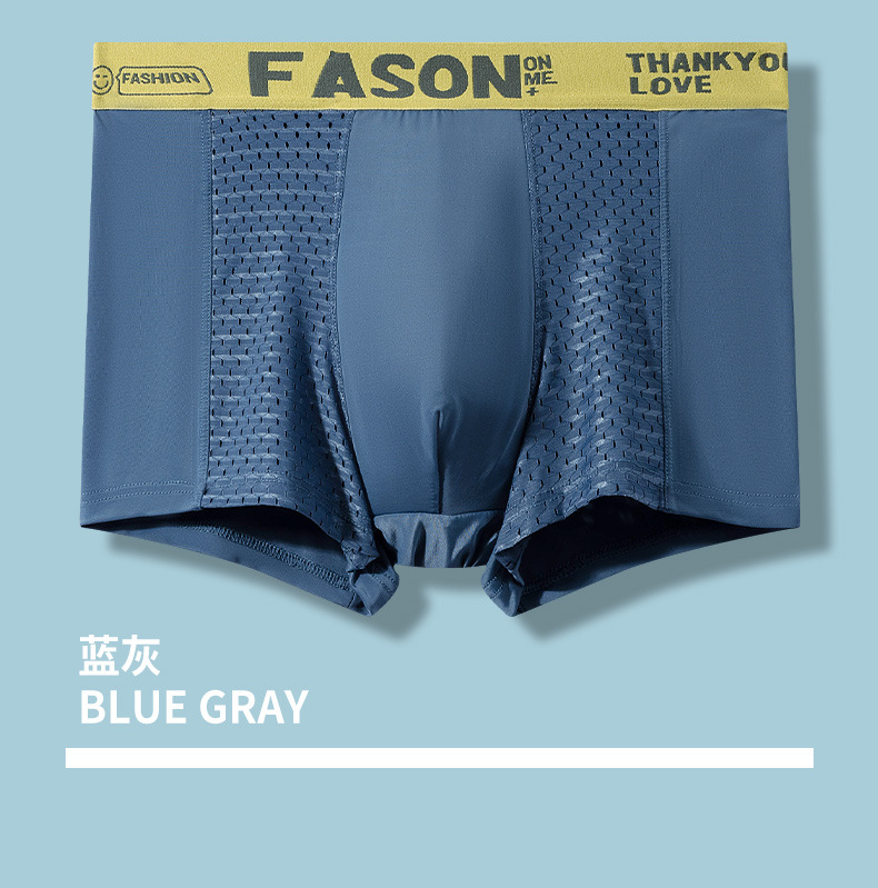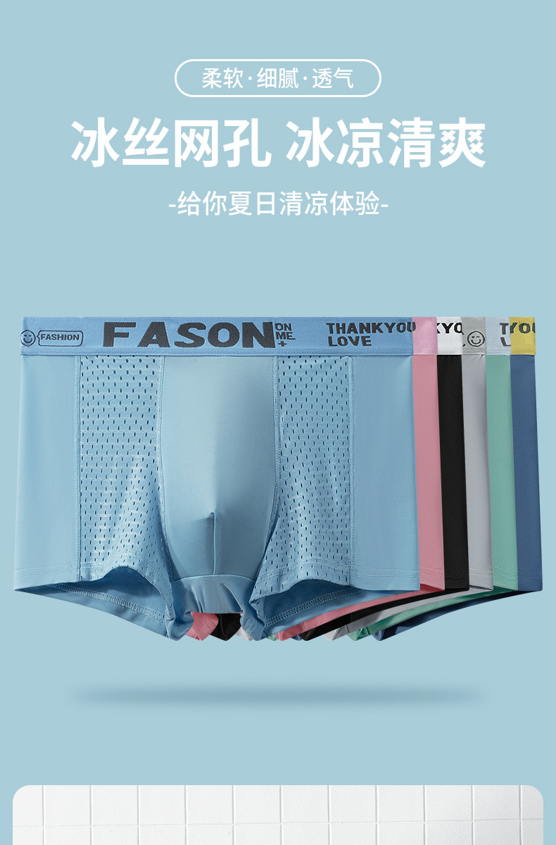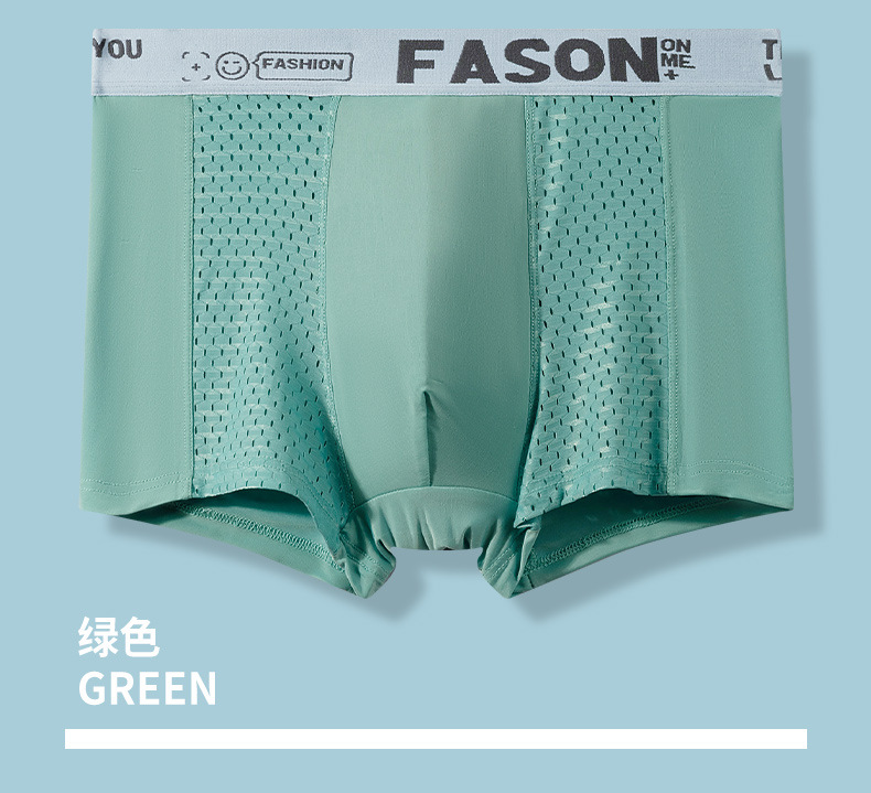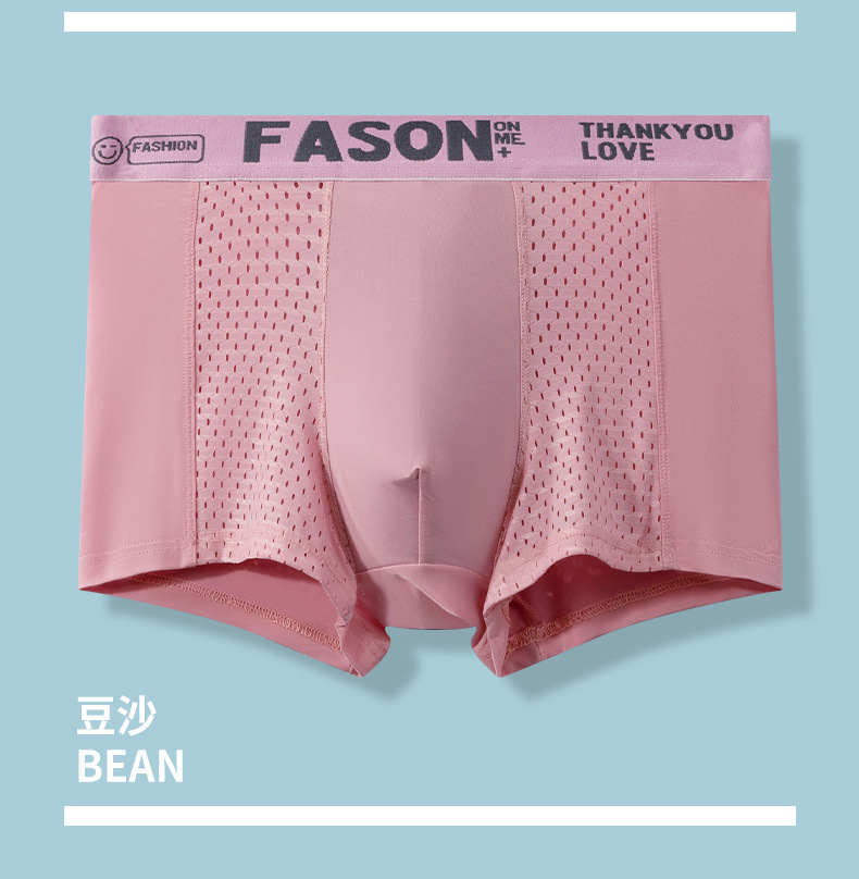 남성 속옷 플러스 사이즈 여름 얇은 통기성 메쉬 아이스 실크 복서 반바지 스포츠 편지 복서 반바지 지점 도매스토어 가기