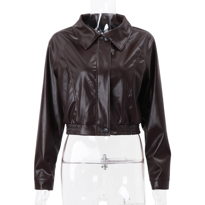 대외 무역 유럽과 미국 여성의 2024 가을 새로운 복고풍 기질 옷깃 지퍼 PU 가죽 미국 캐주얼 재킷 코트