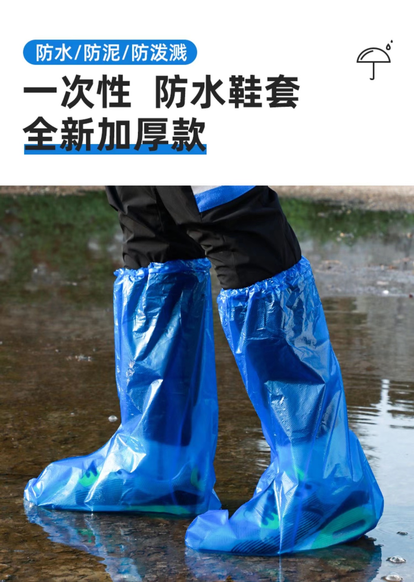 일회용 장화 방수 미끄럼 방지 하이 튜브 신발 커버 비오는 날 두꺼운 내마모성 투명 플라스틱 발 커버 방비