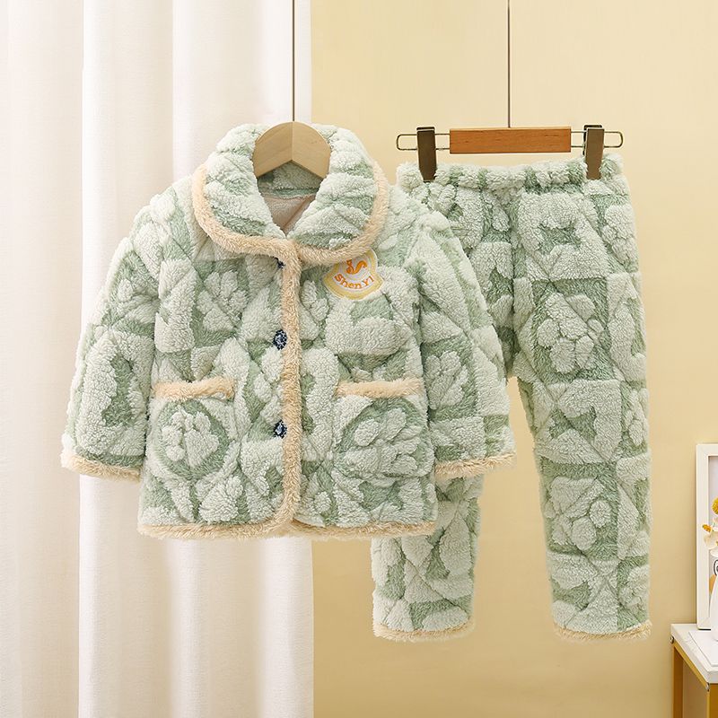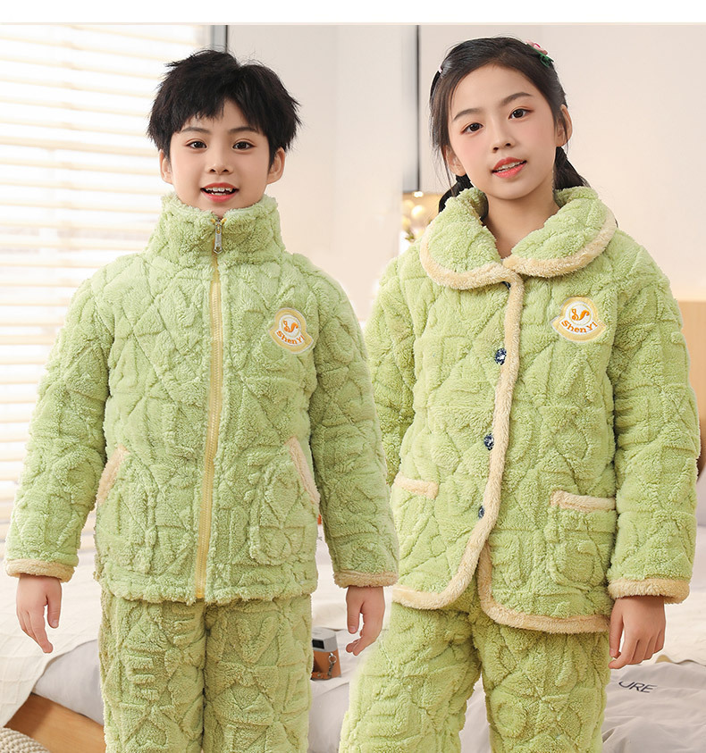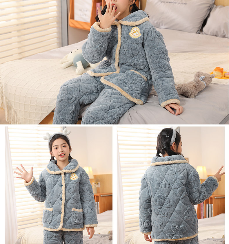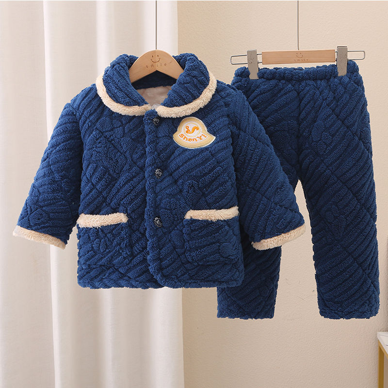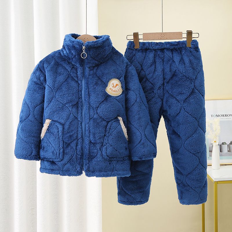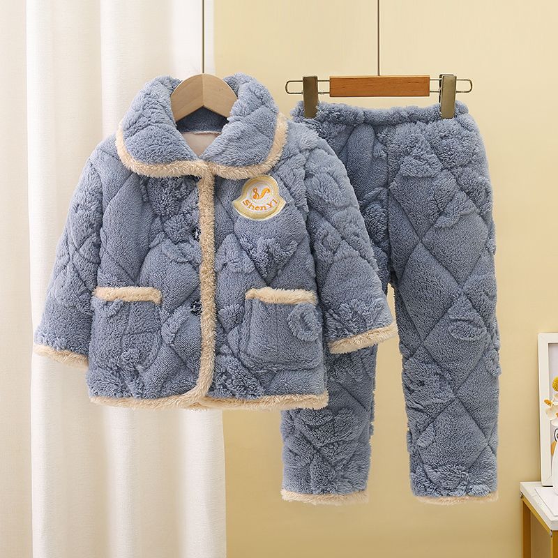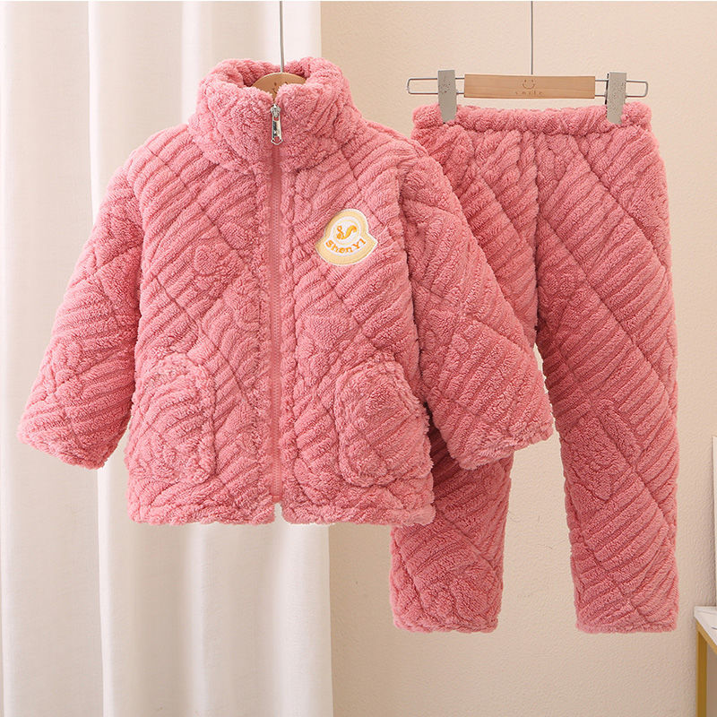 어린이 잠옷 소년의 겨울 3 층 퀼트 기모 두꺼운 산호 양털 귀여운 소녀 큰 어린이 세트 홈 옷스토어 가기
