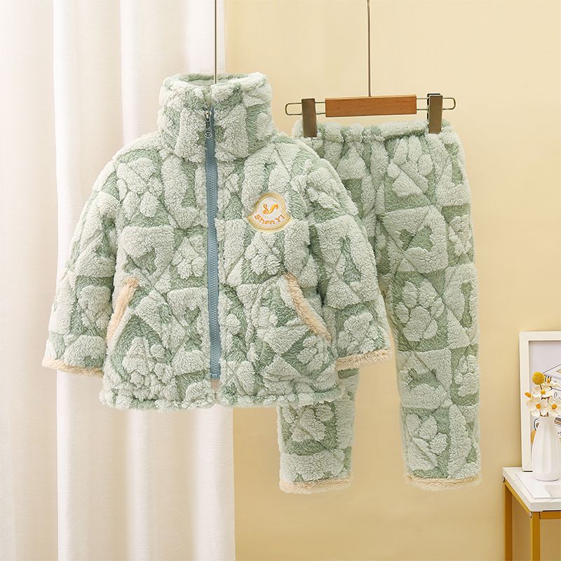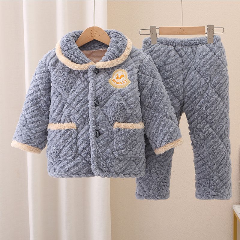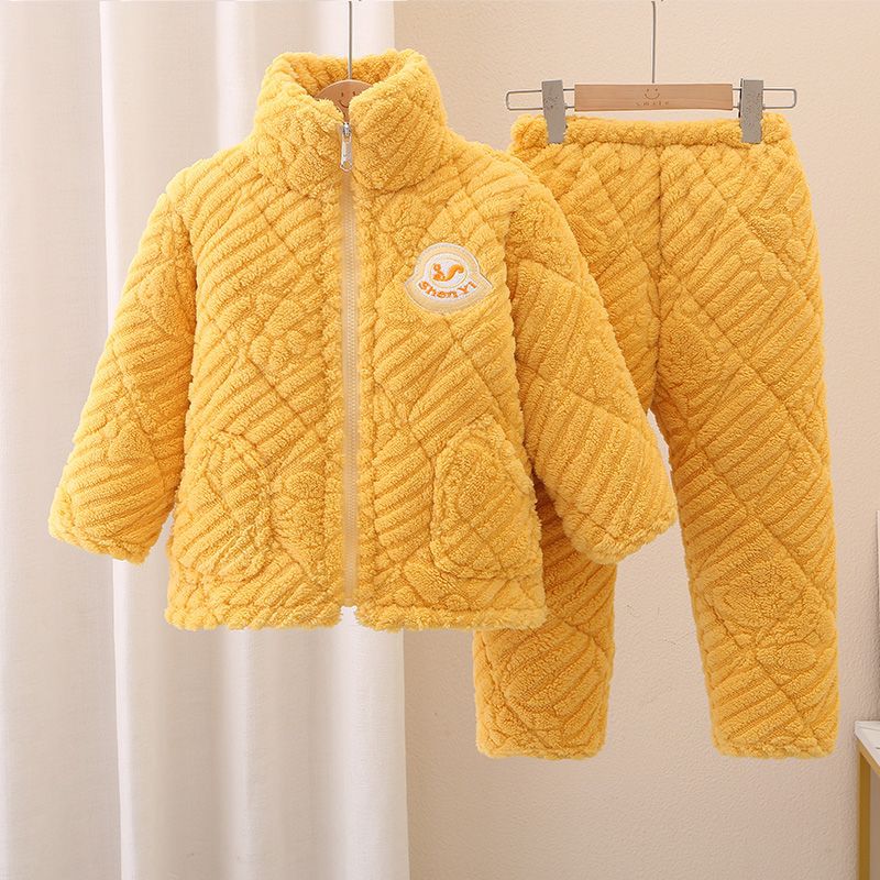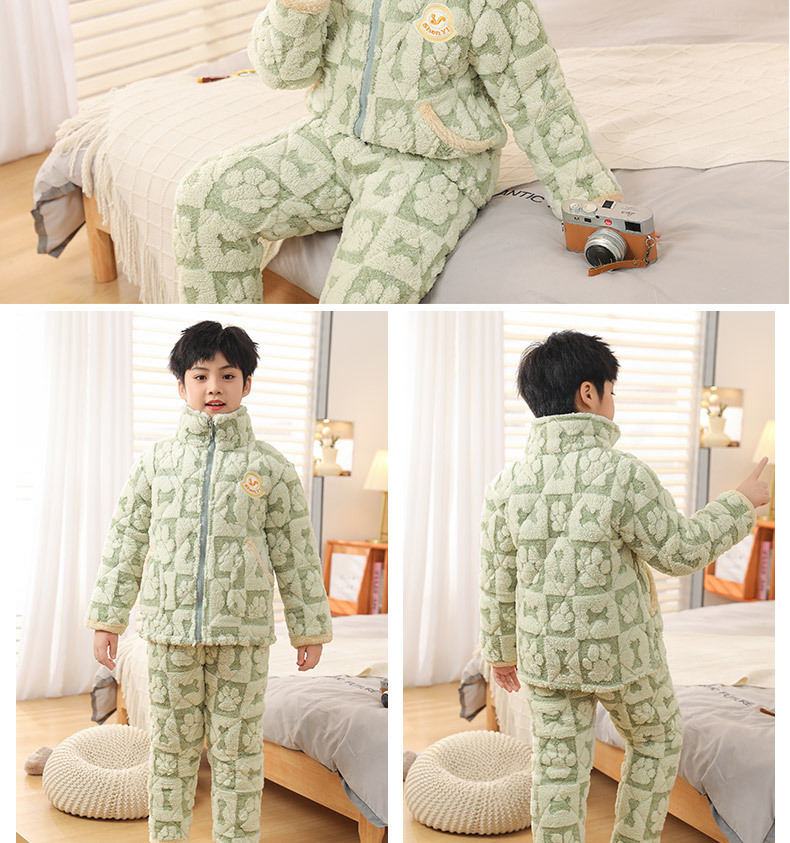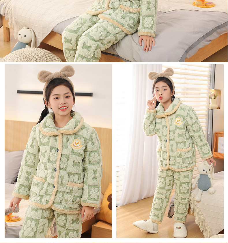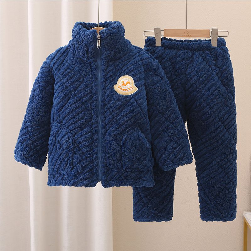 어린이 잠옷 소년의 겨울 3 층 퀼트 기모 두꺼운 산호 양털 귀여운 소녀 큰 어린이 세트 홈 옷스토어 가기