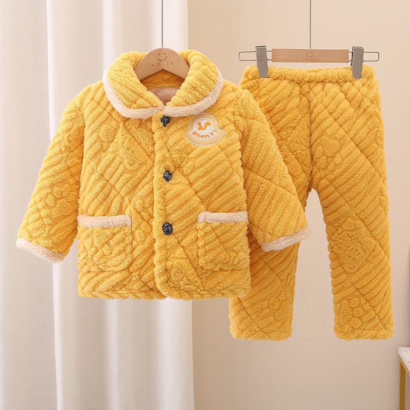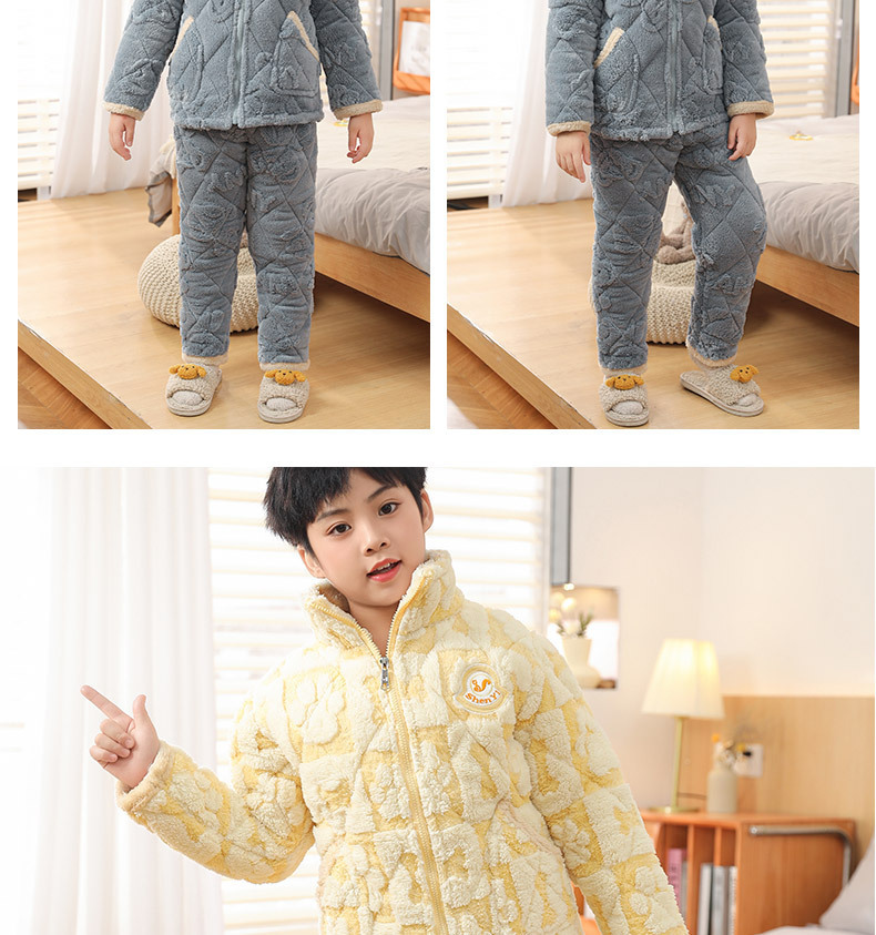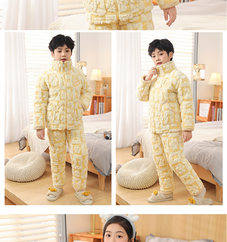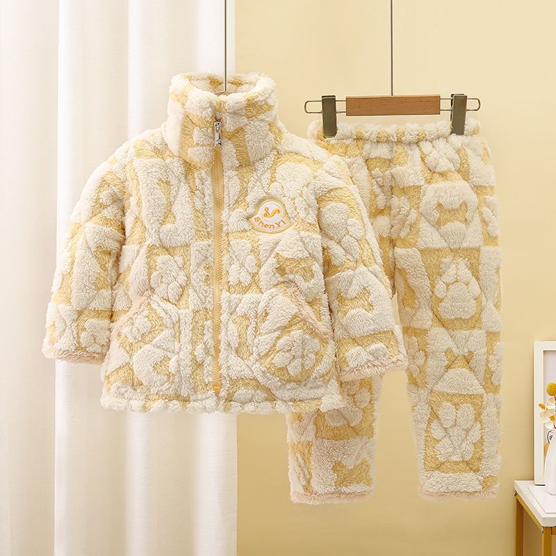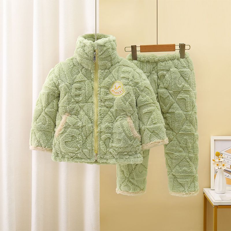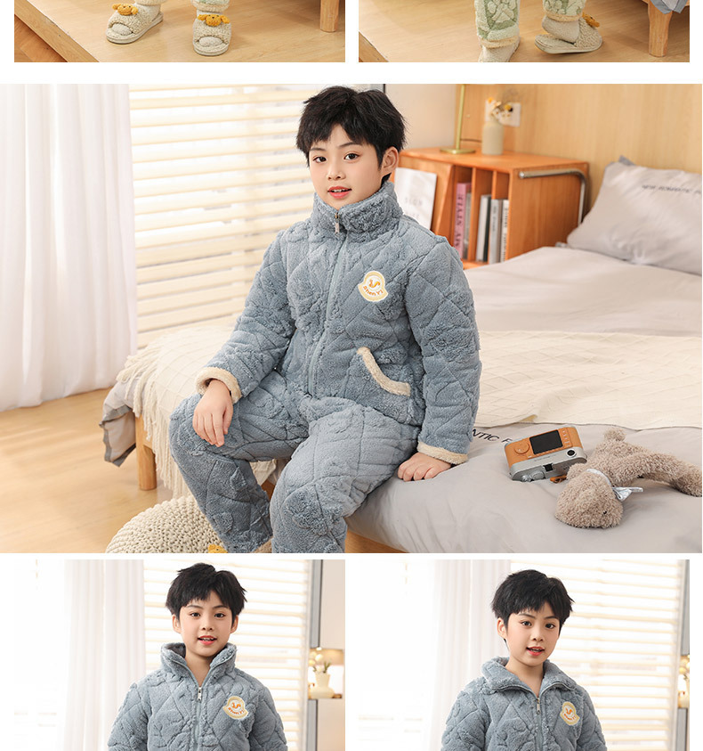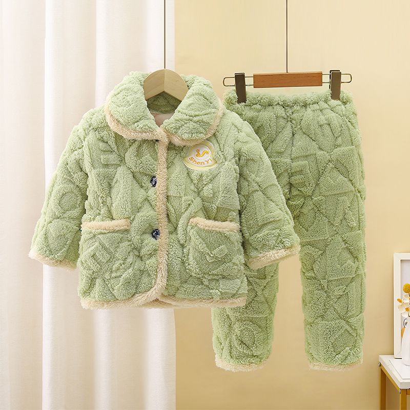 어린이 잠옷 소년의 겨울 3 층 퀼트 기모 두꺼운 산호 양털 귀여운 소녀 큰 어린이 세트 홈 옷스토어 가기