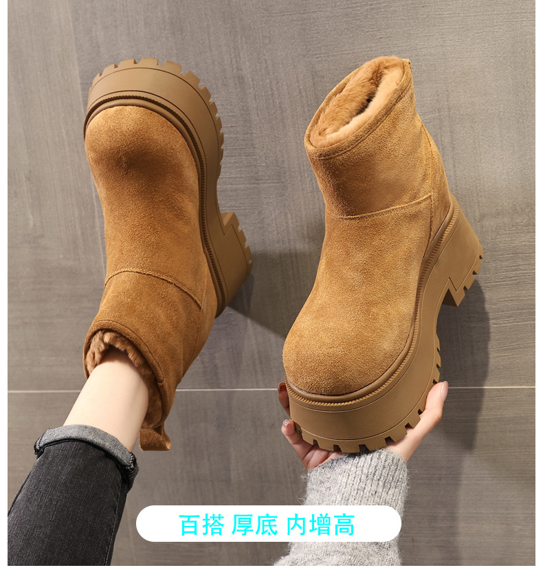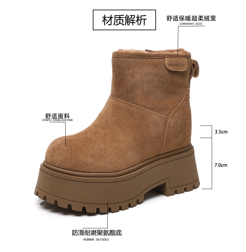 SJN9915-6A 높이 증가 두꺼운 바닥 유행 기모 따뜻한 스노우 부츠 여성의 2024 겨울 새로운 미끄럼 방지 코튼 신발