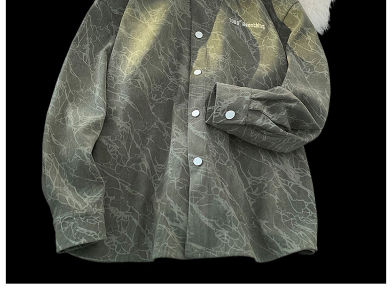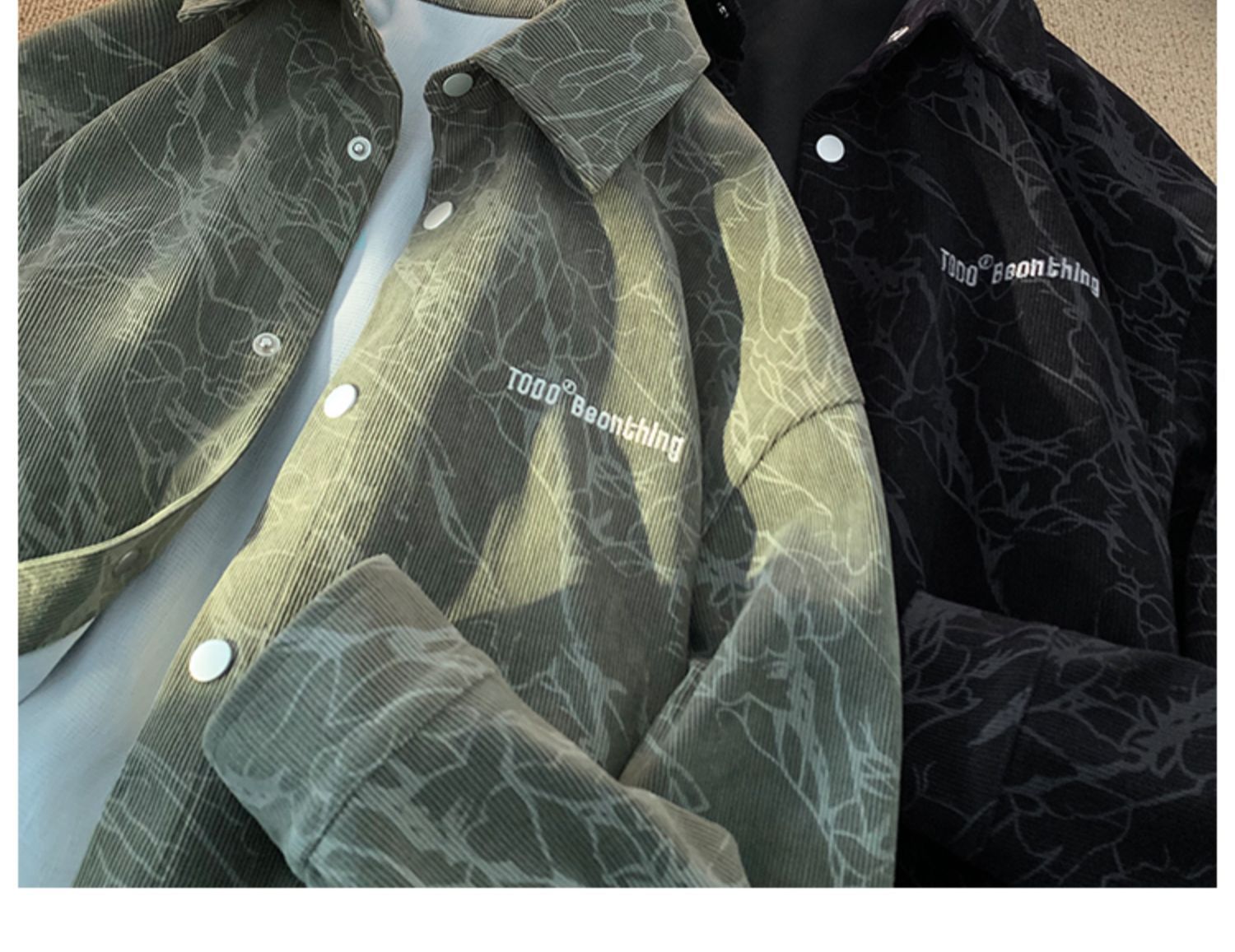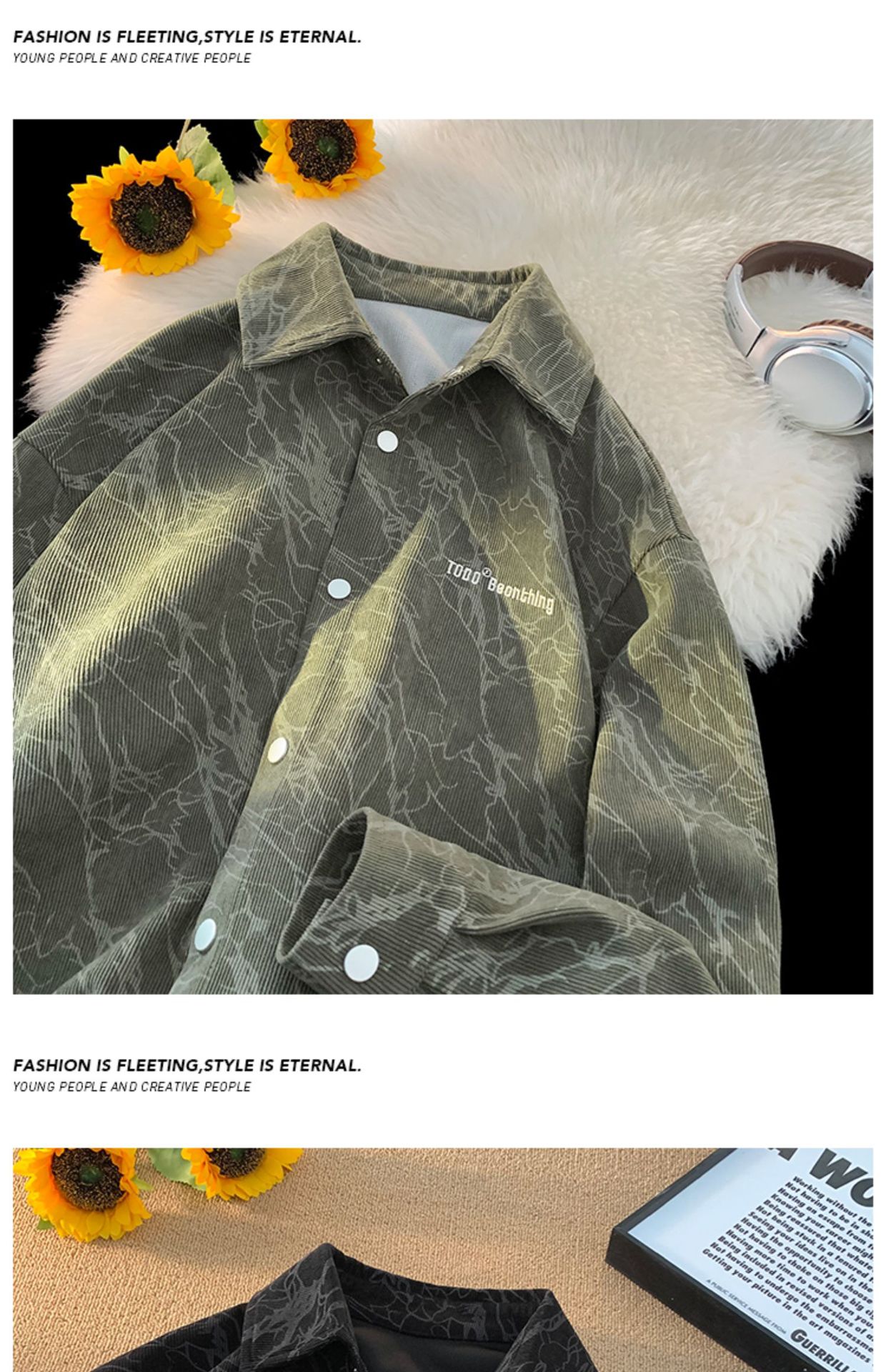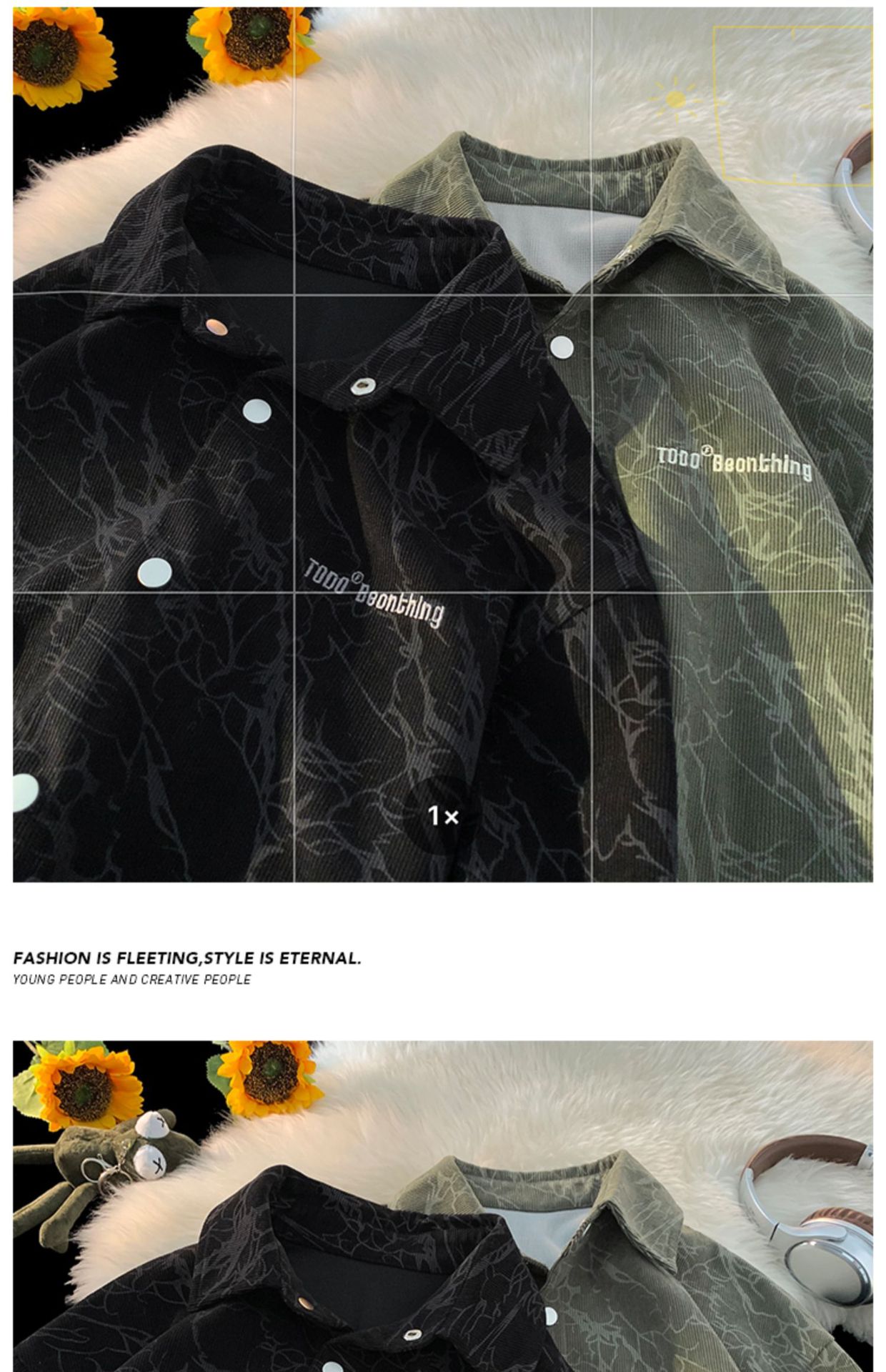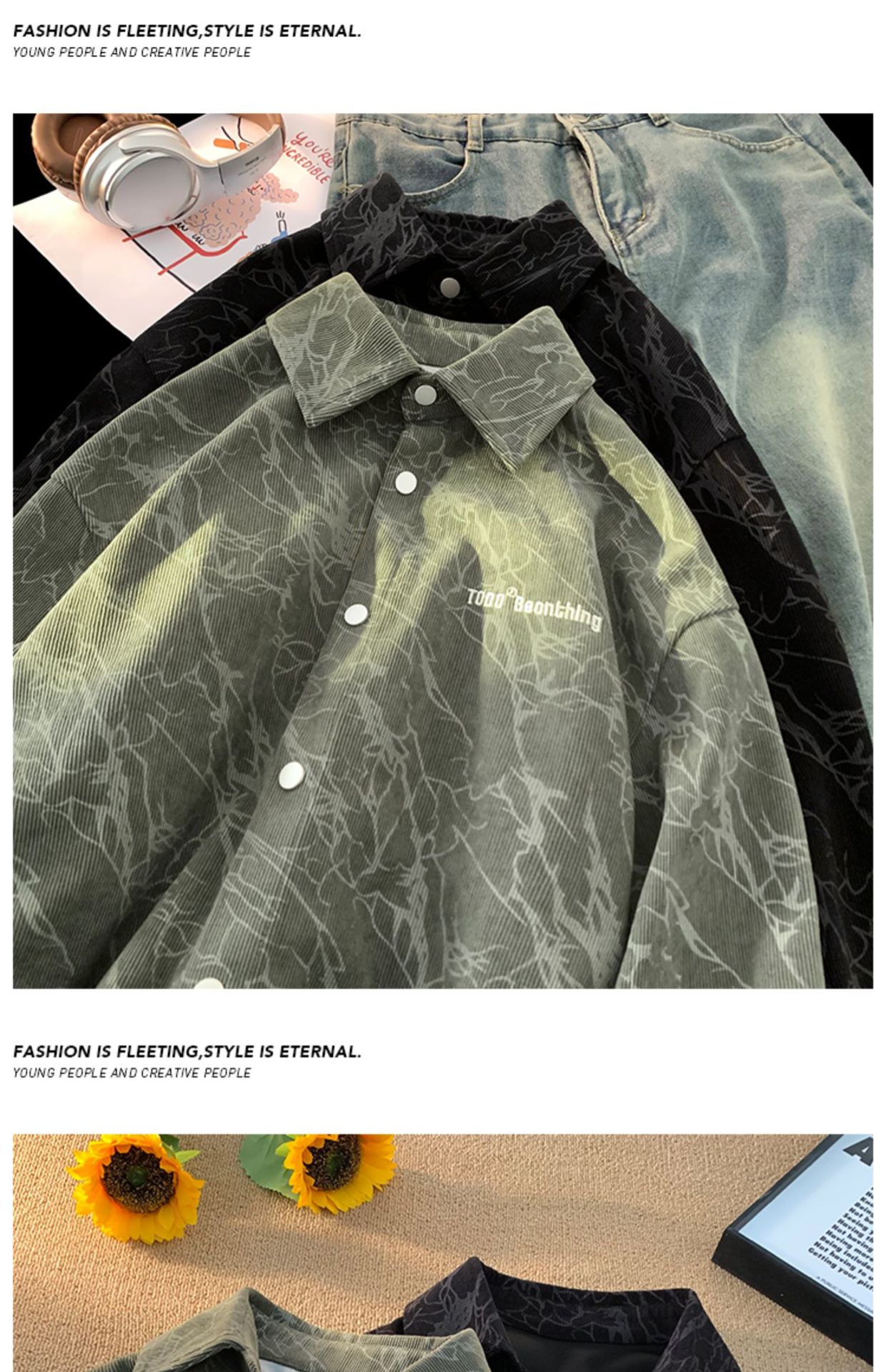 아메리칸 스타일 레트로 코듀로이 셔츠 남성용 트렌디 브랜드 봄 자수 하이 엔드 느낌 코피 핸섬 셔츠 홍콩 스타일 일본 재킷